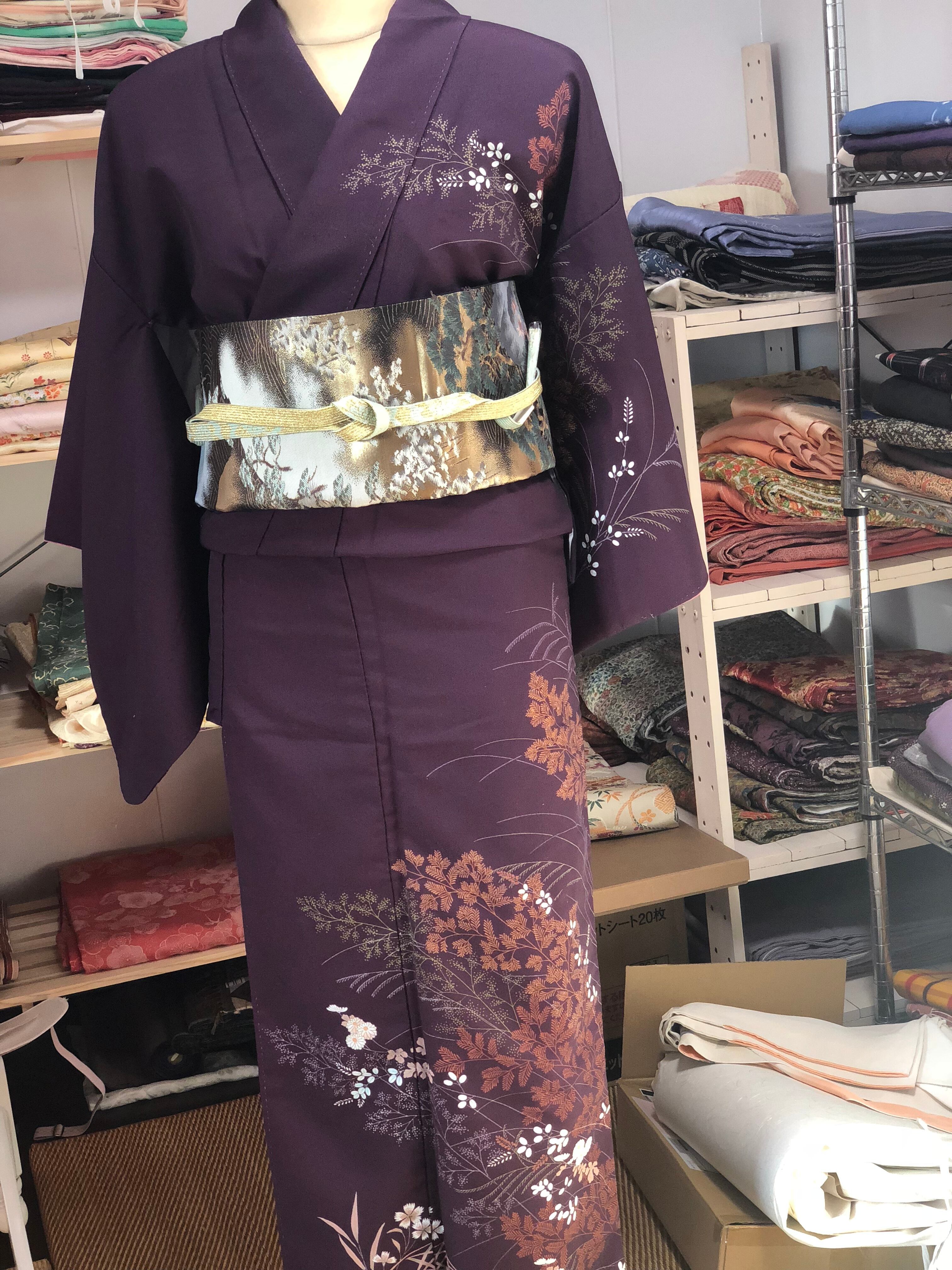 秋の草花が描かれた訪問着