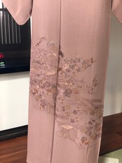 落ち着いたピンク地のスワトー刺繍訪問着