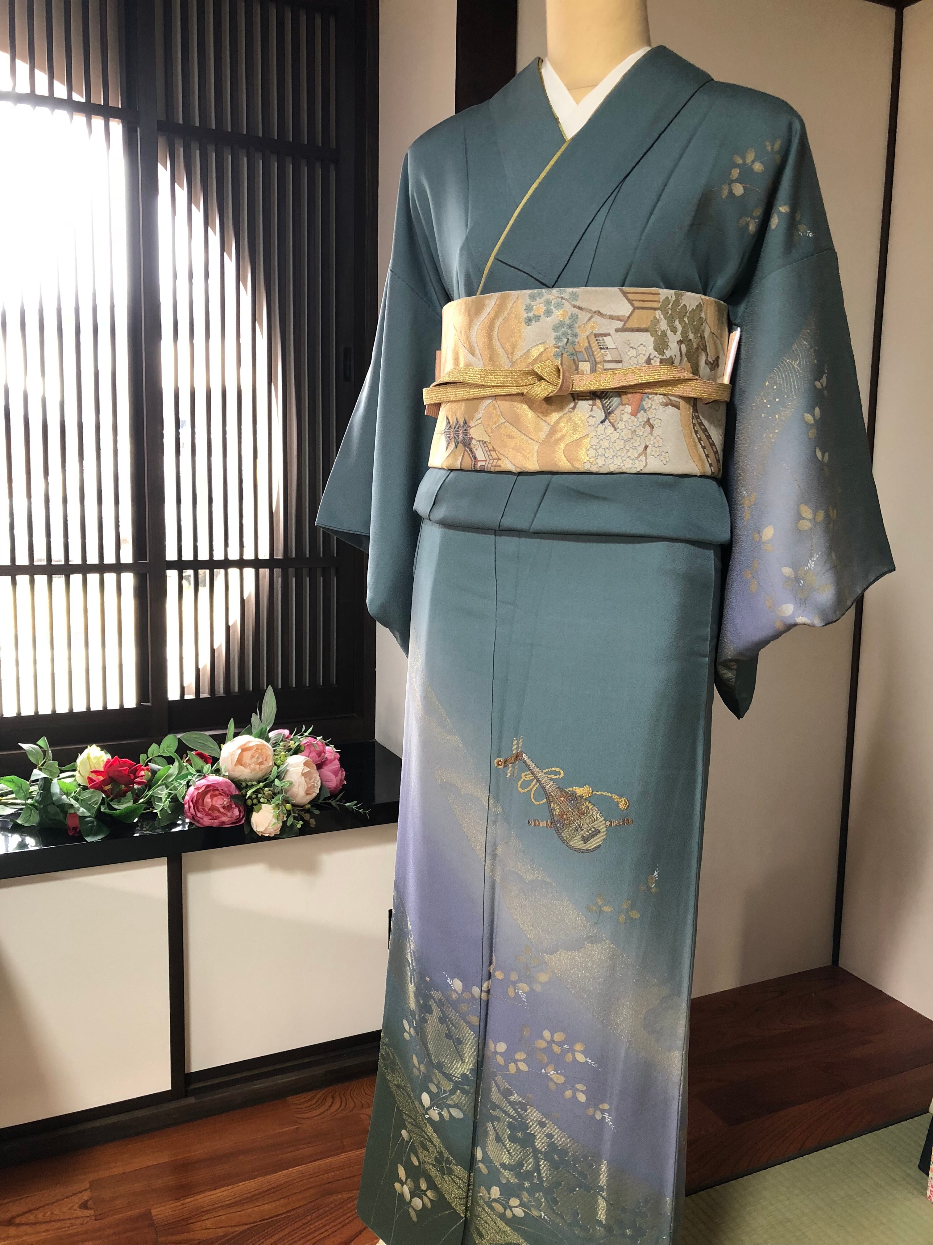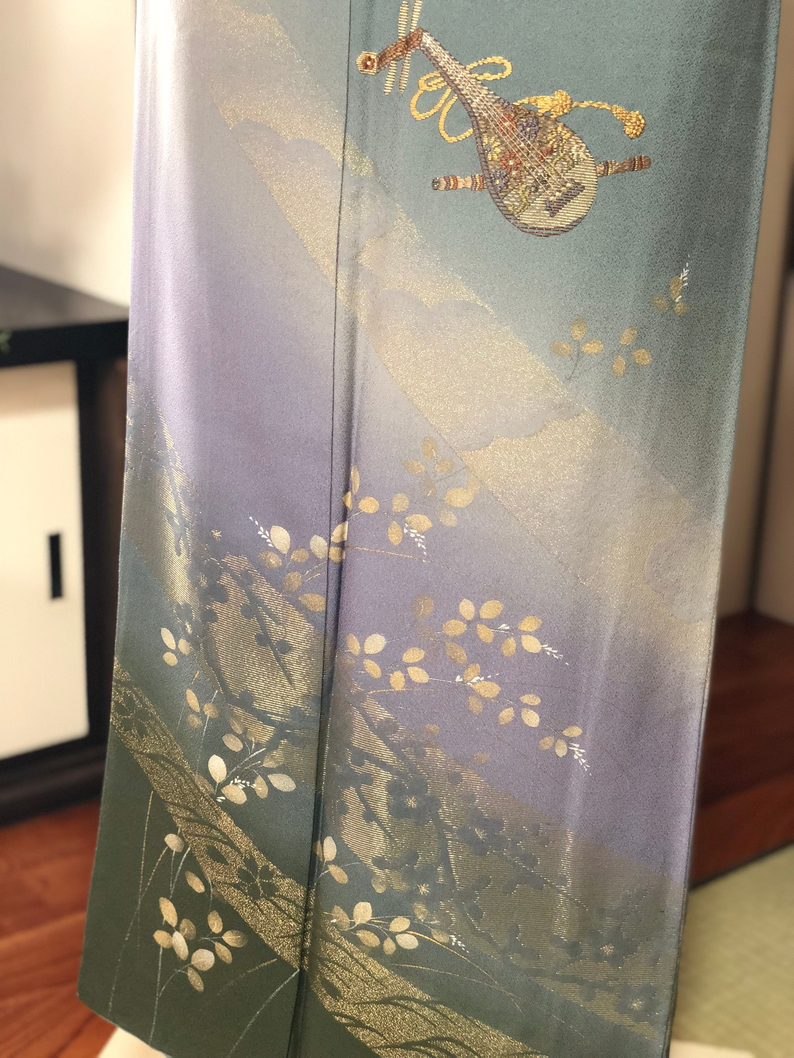 琵琶と笛の刺繍も存在感があります。