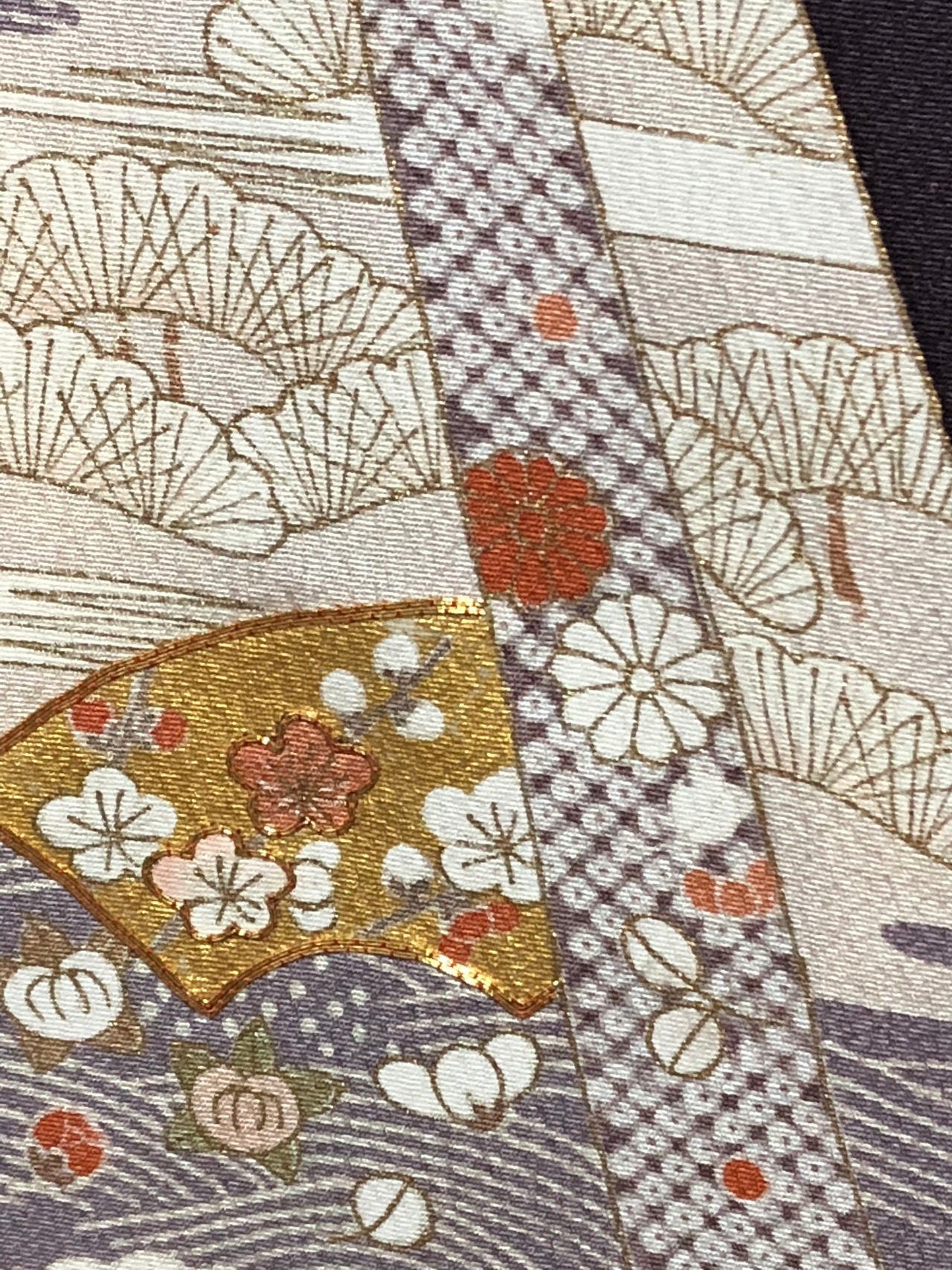 控えめではありますが、松、梅、菊、橘などの花木と七宝、雲、波、鹿の子などの古典柄もバランスよく描かれています。