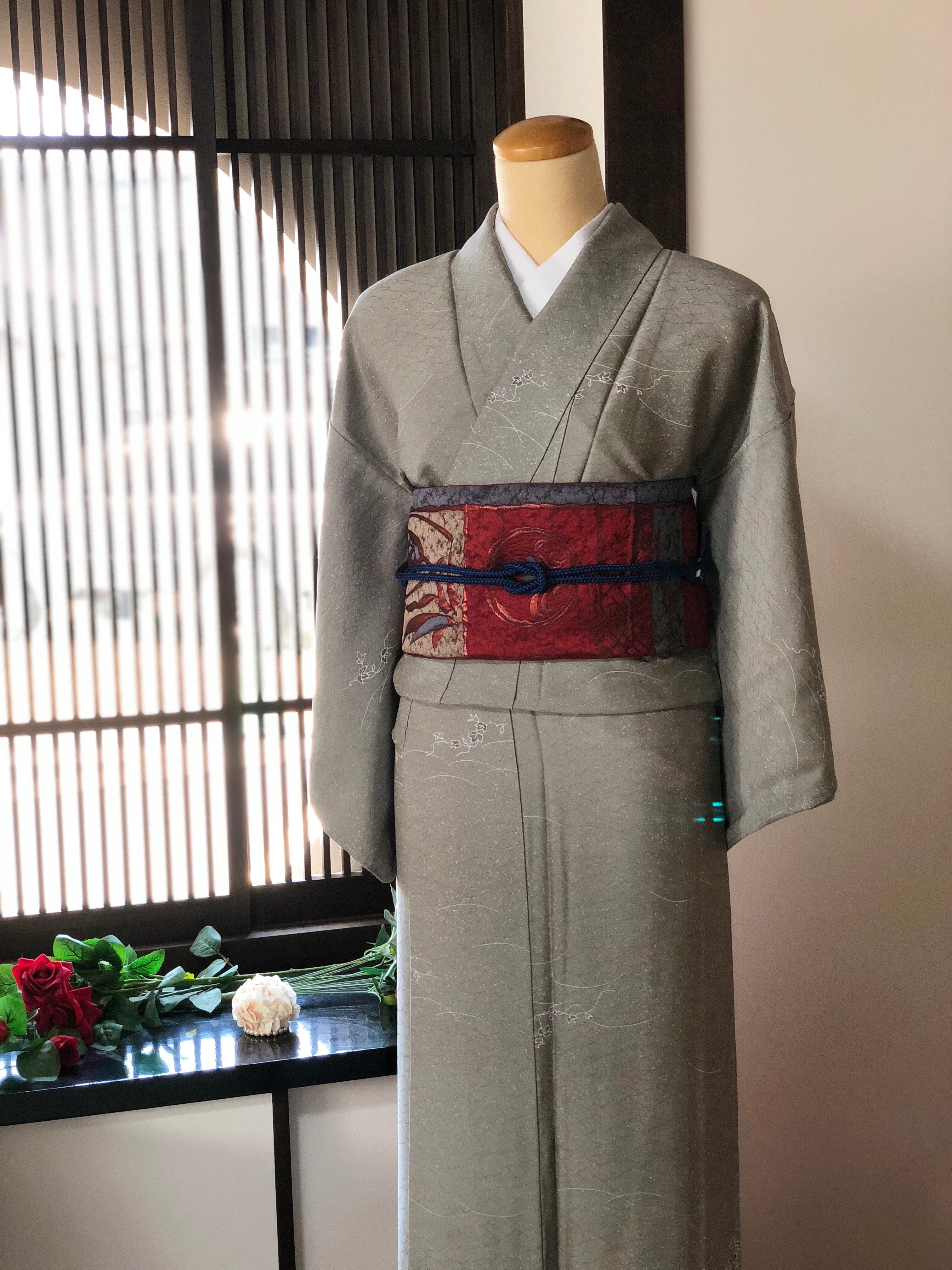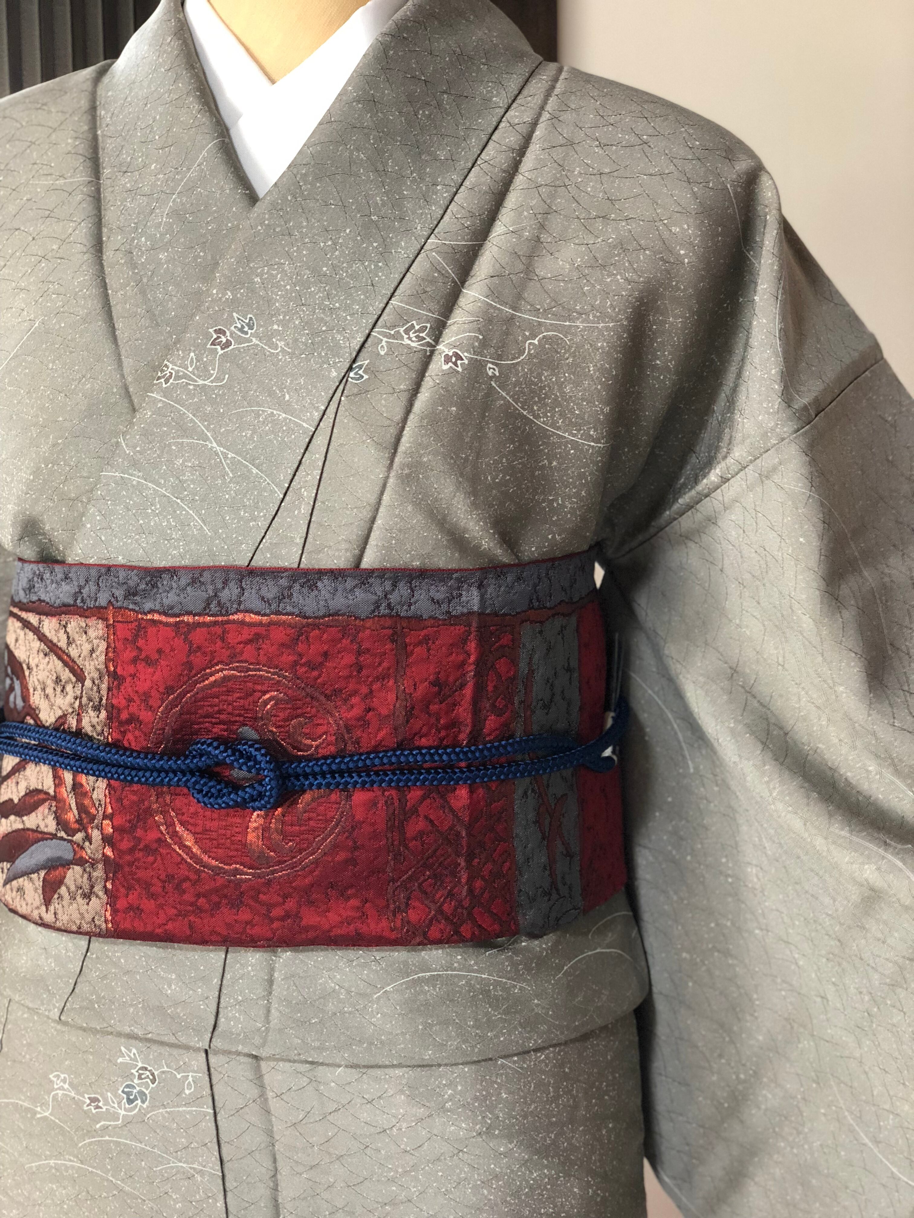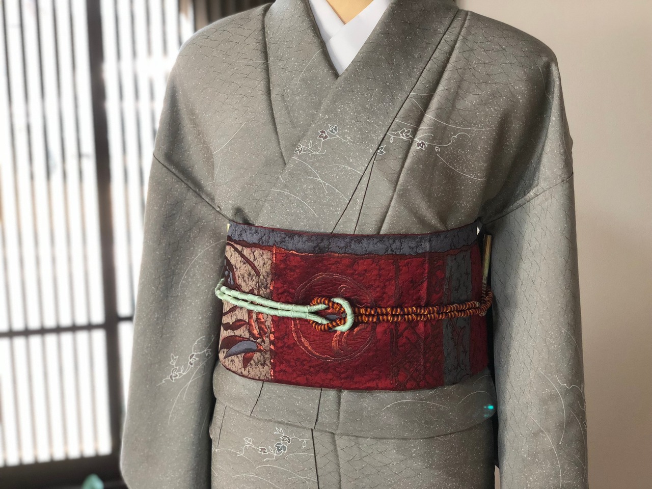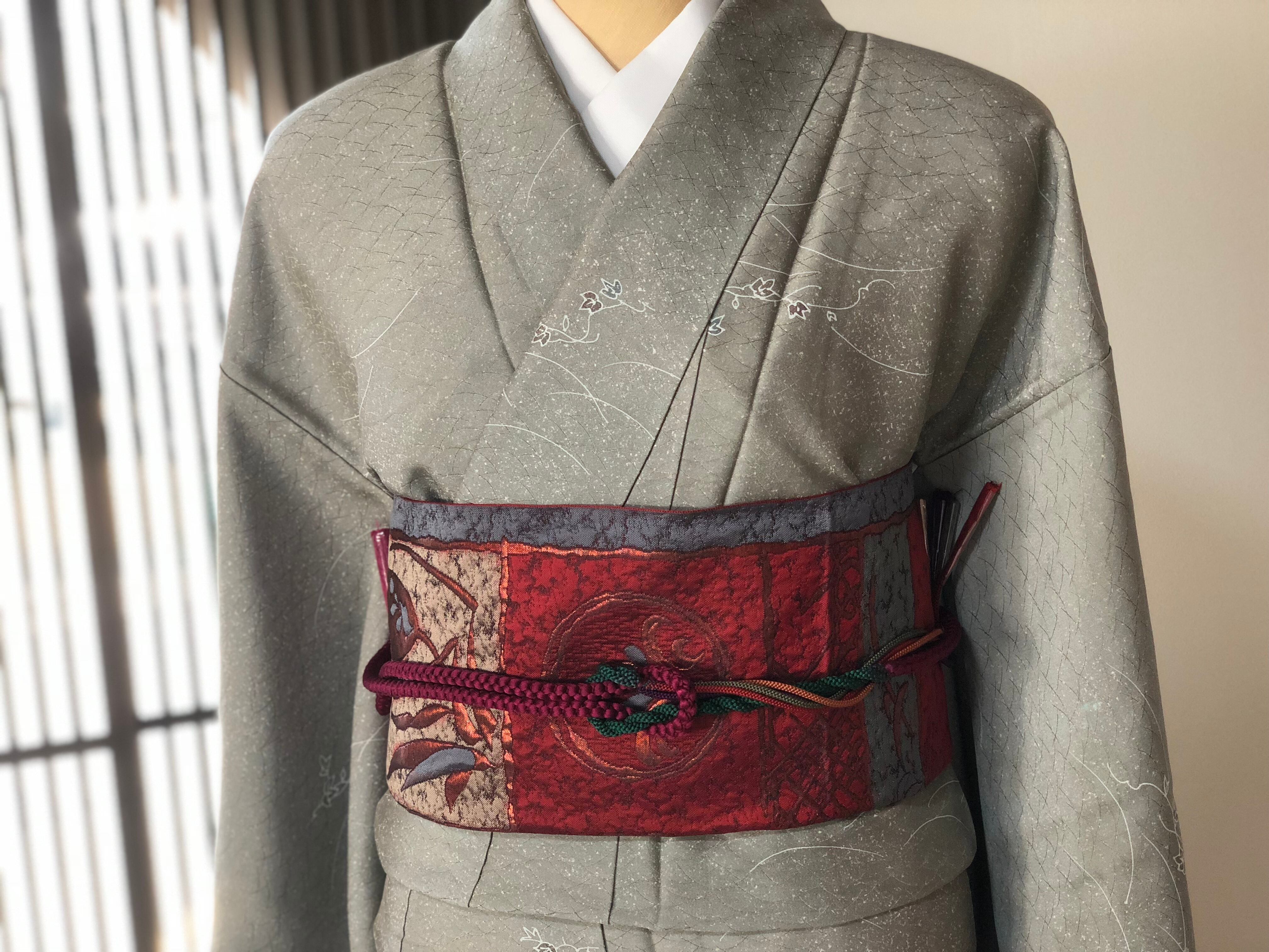 一見地味になりがちなので、思い切った色目の帯を合わせてみました。