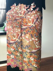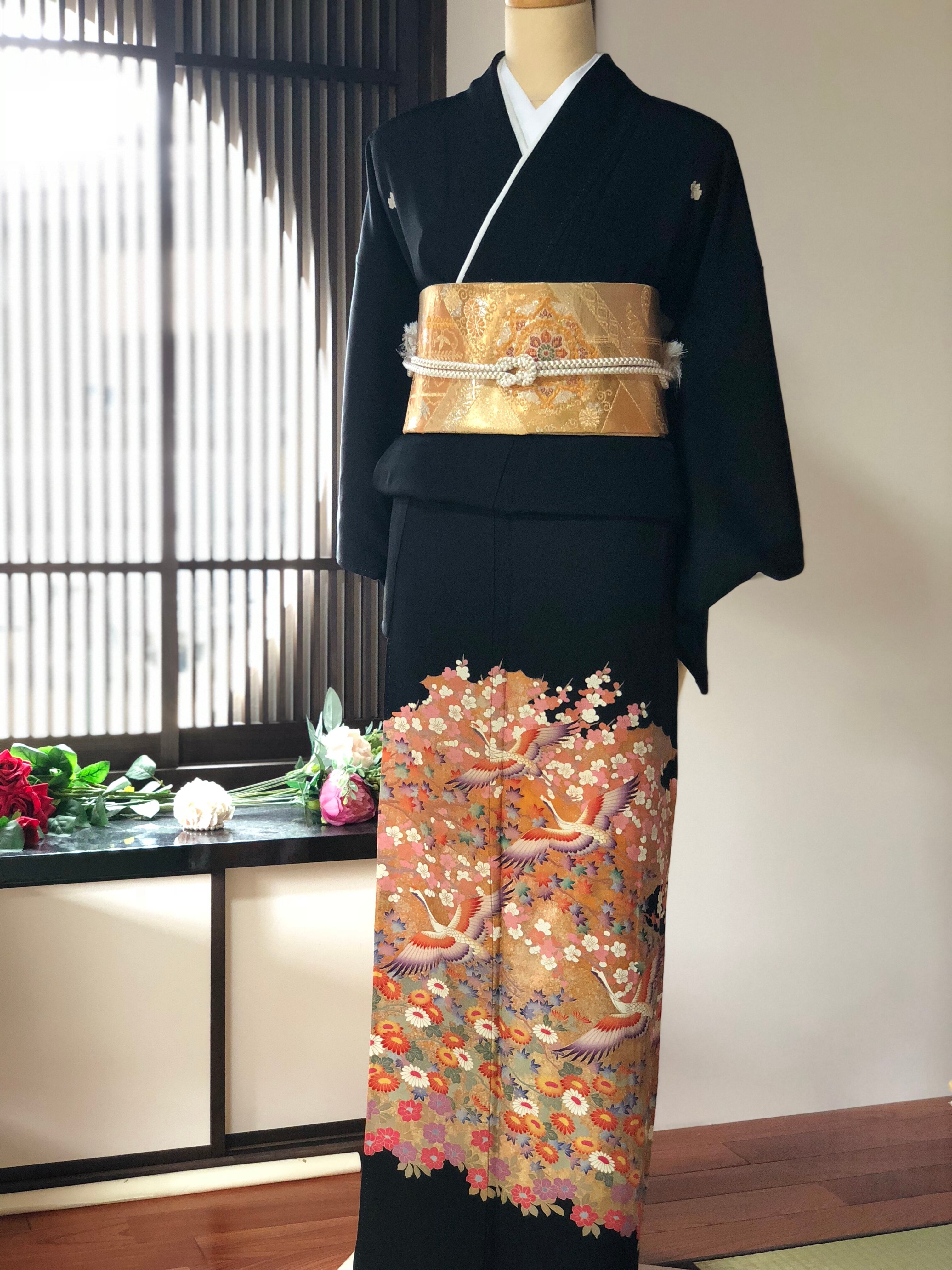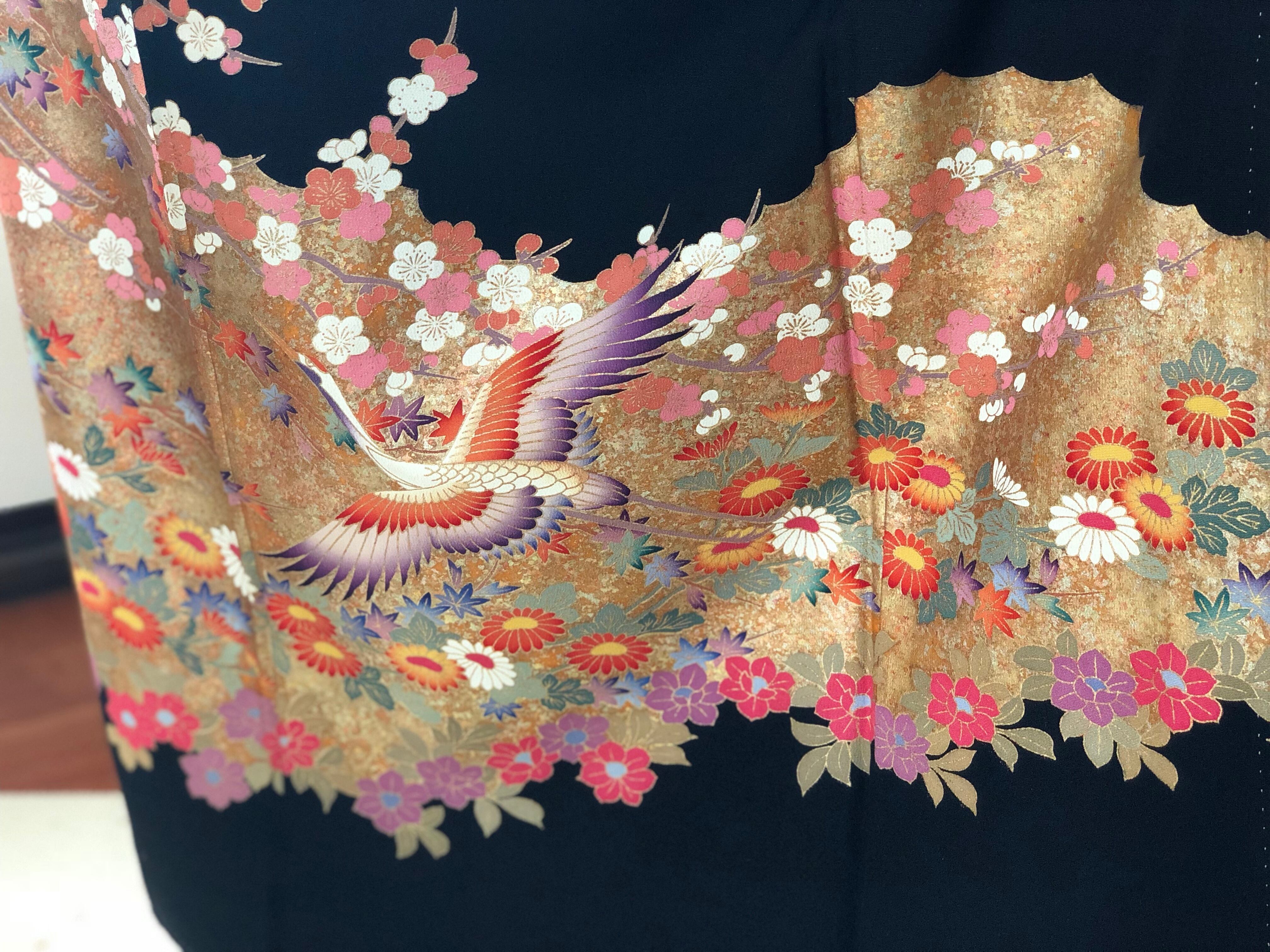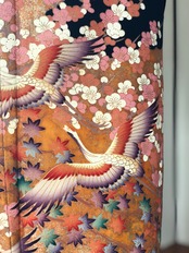 一面の鮮やかな色とりどりの花の中を鶴が優雅に舞う姿が、一層おめでたい気持ちを表してくれることでしょう。