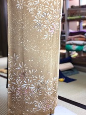 訪問着にしては珍しい抑えた色調と柄ゆきです。
