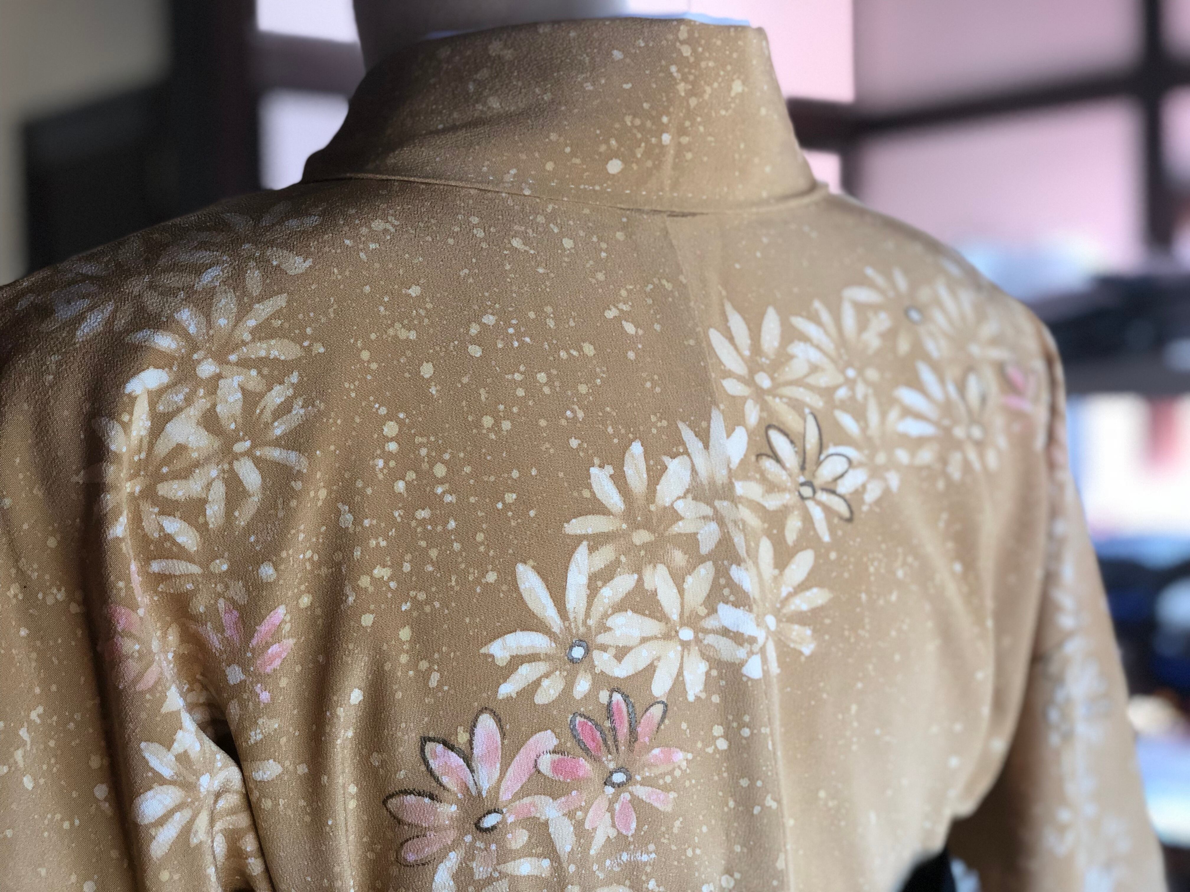 背中や後ろ裾も白花満開で後ろ姿も美しい!