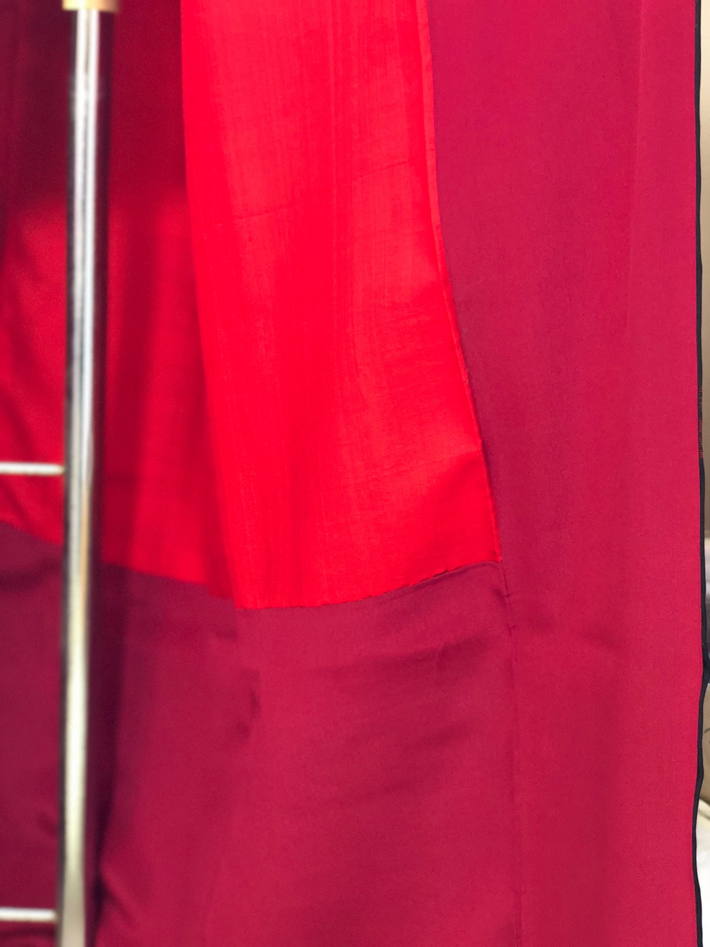 黒地赤花柄お召し