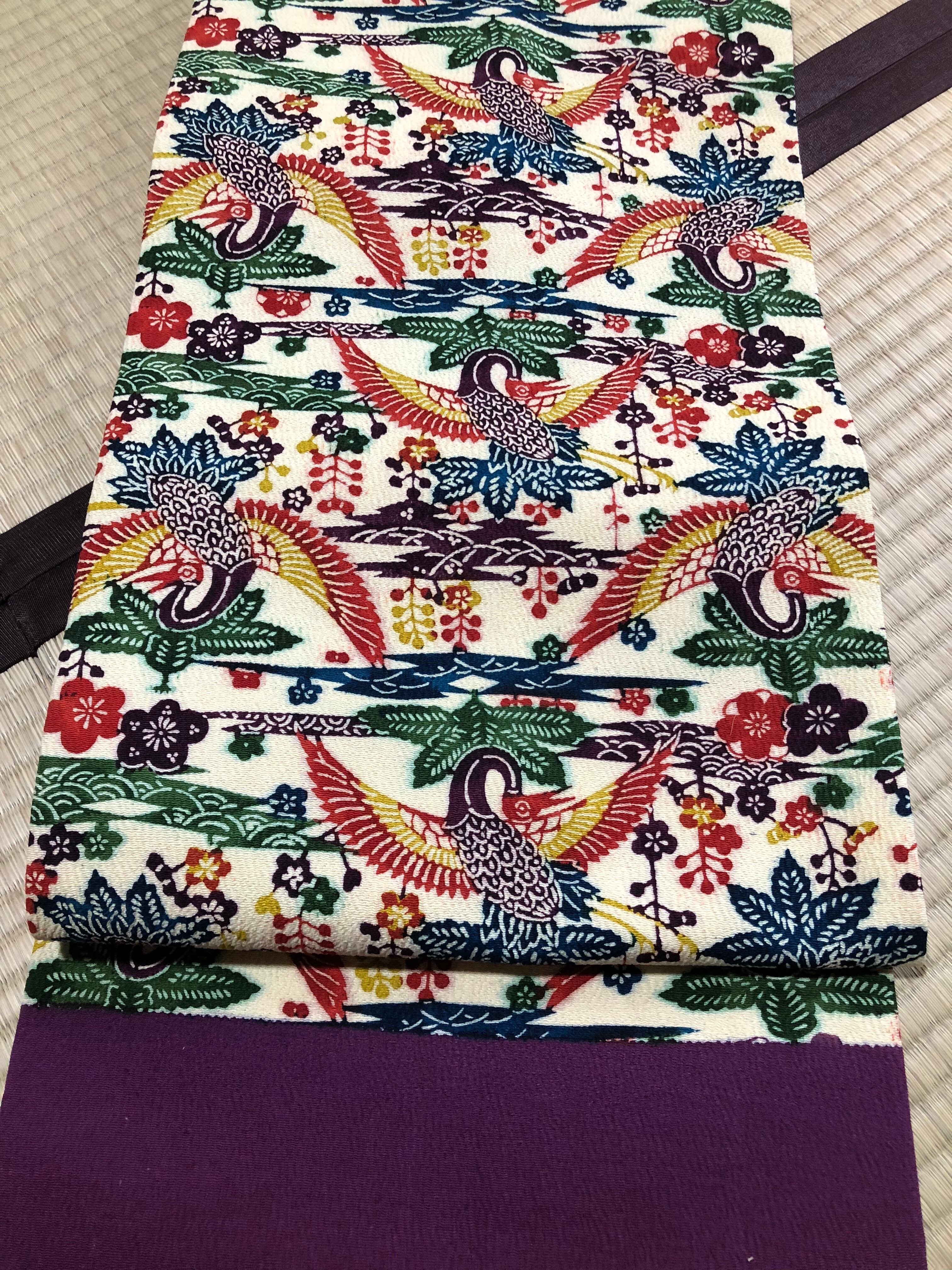 鳳凰と草花柄名古屋帯。