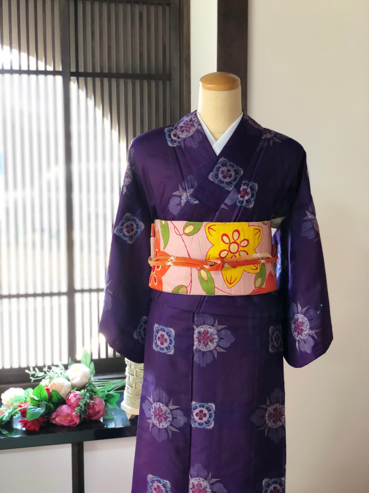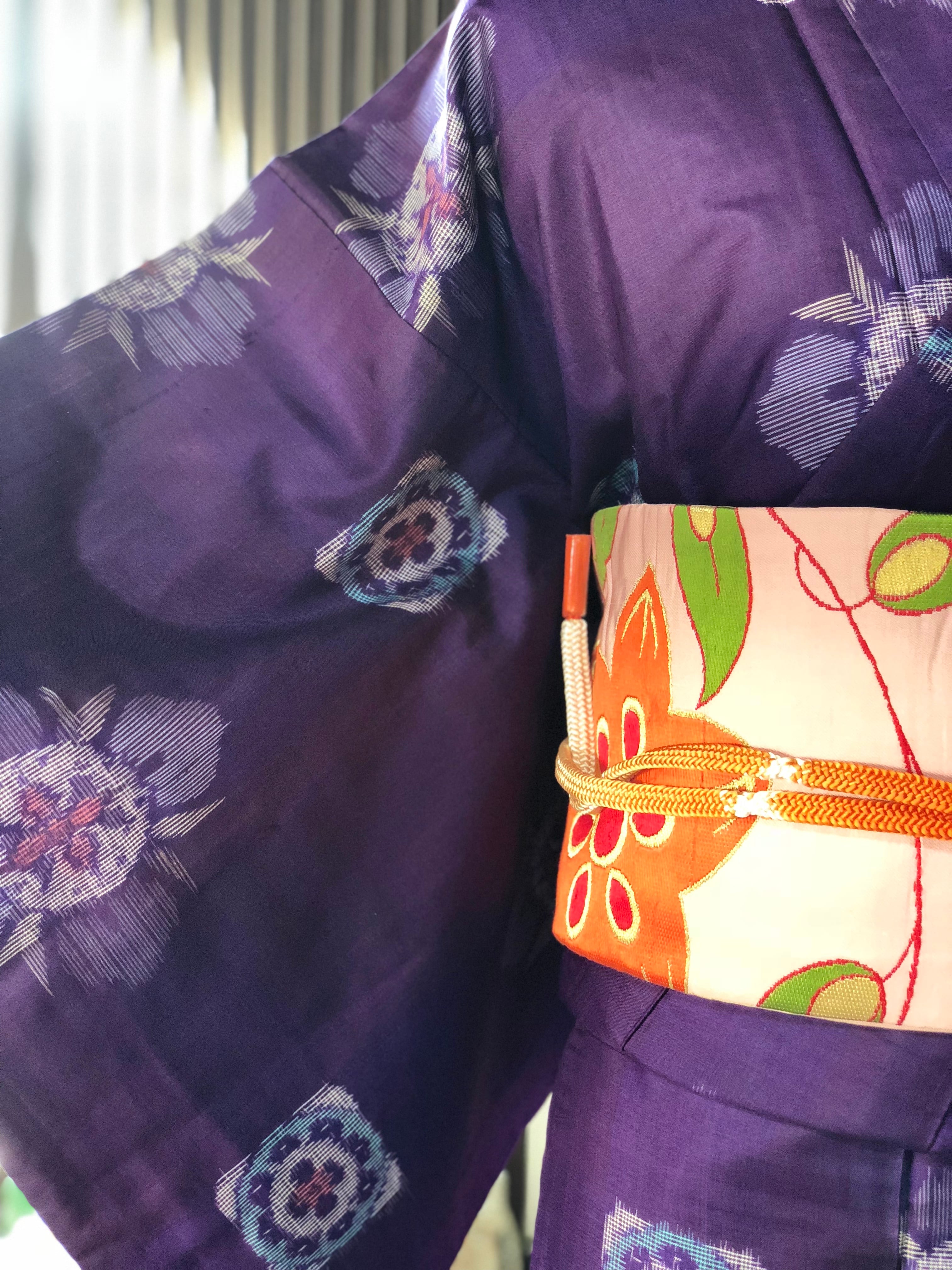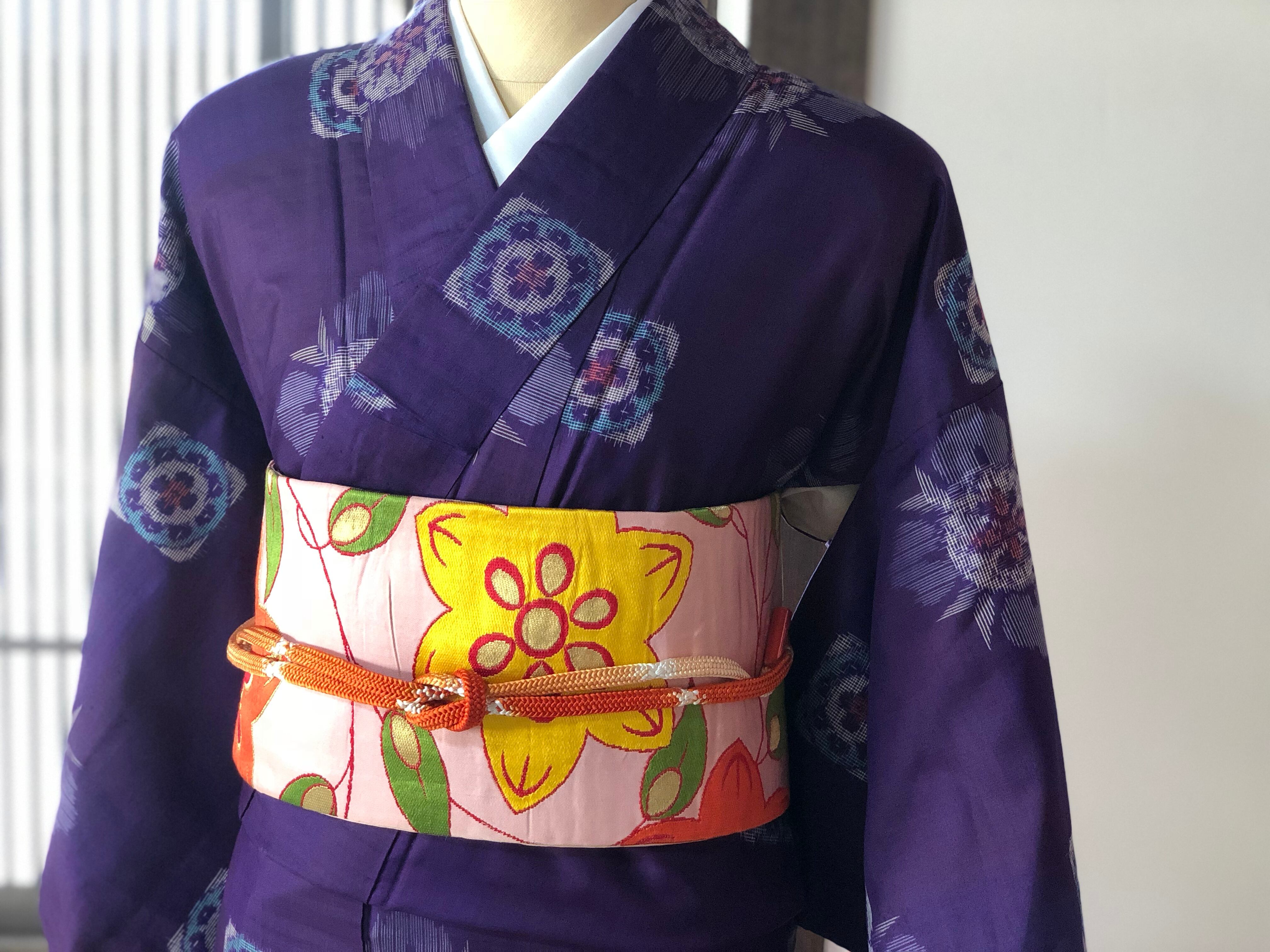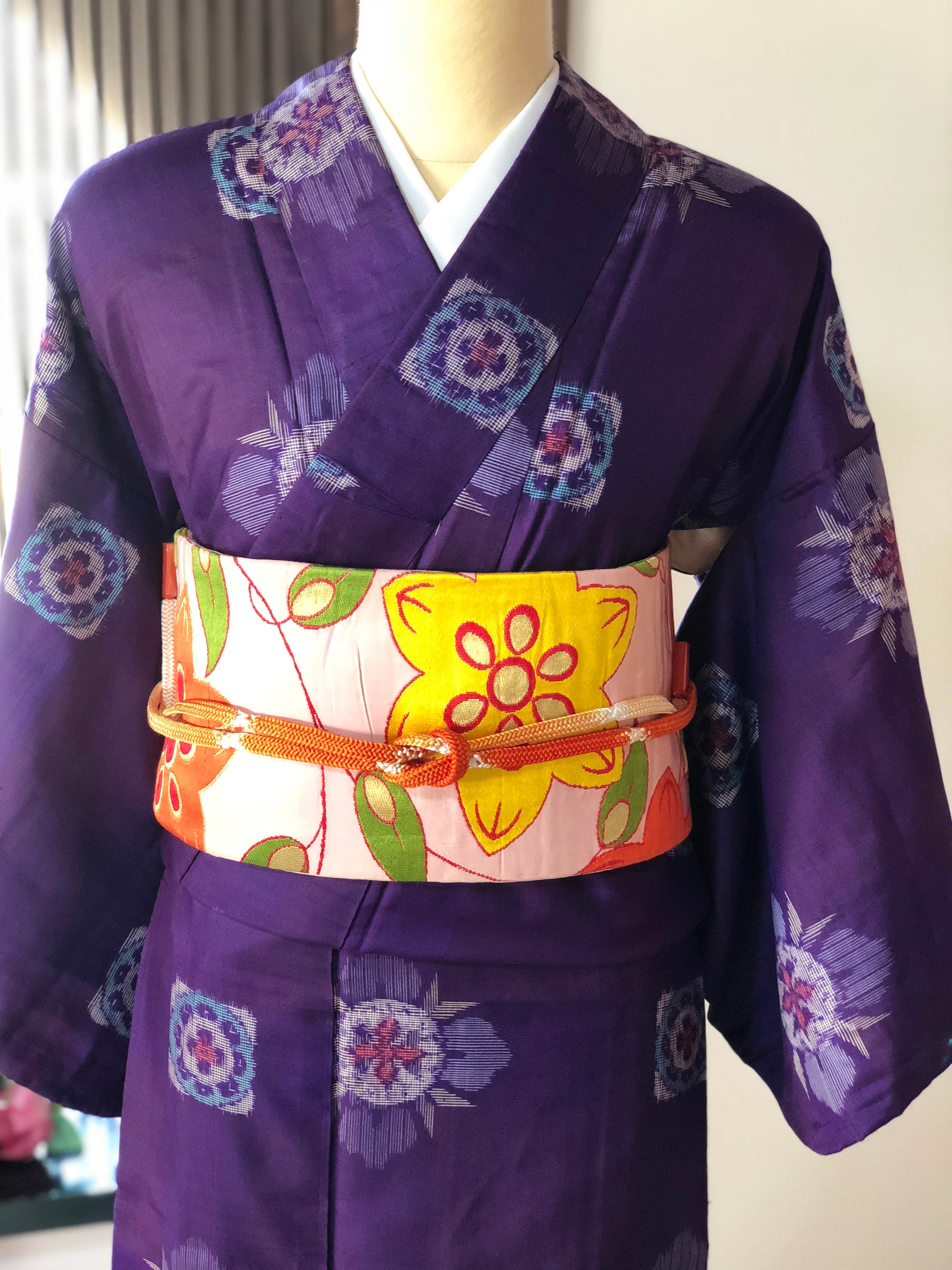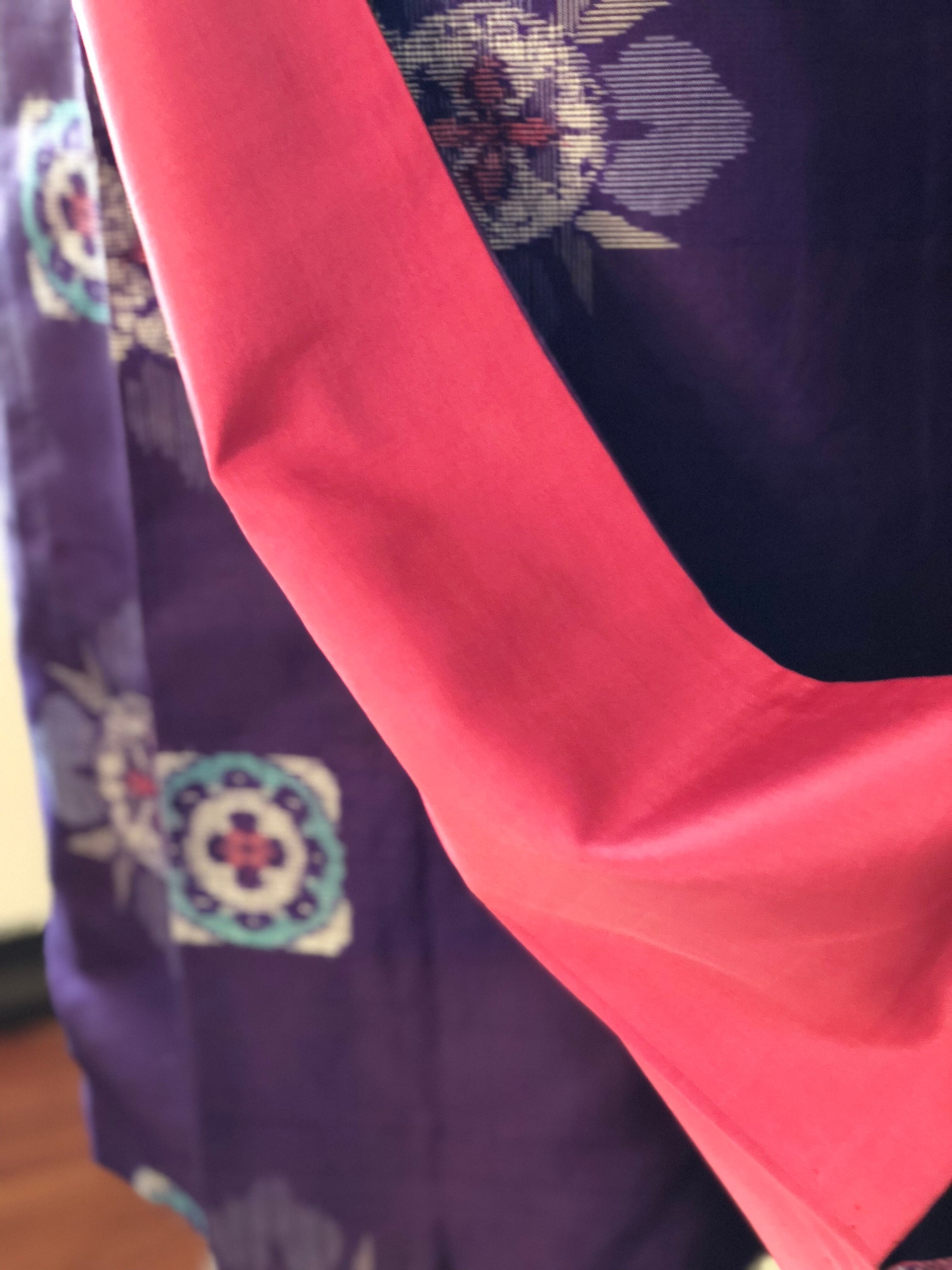 紫地で、八掛は綺麗なピンクです。