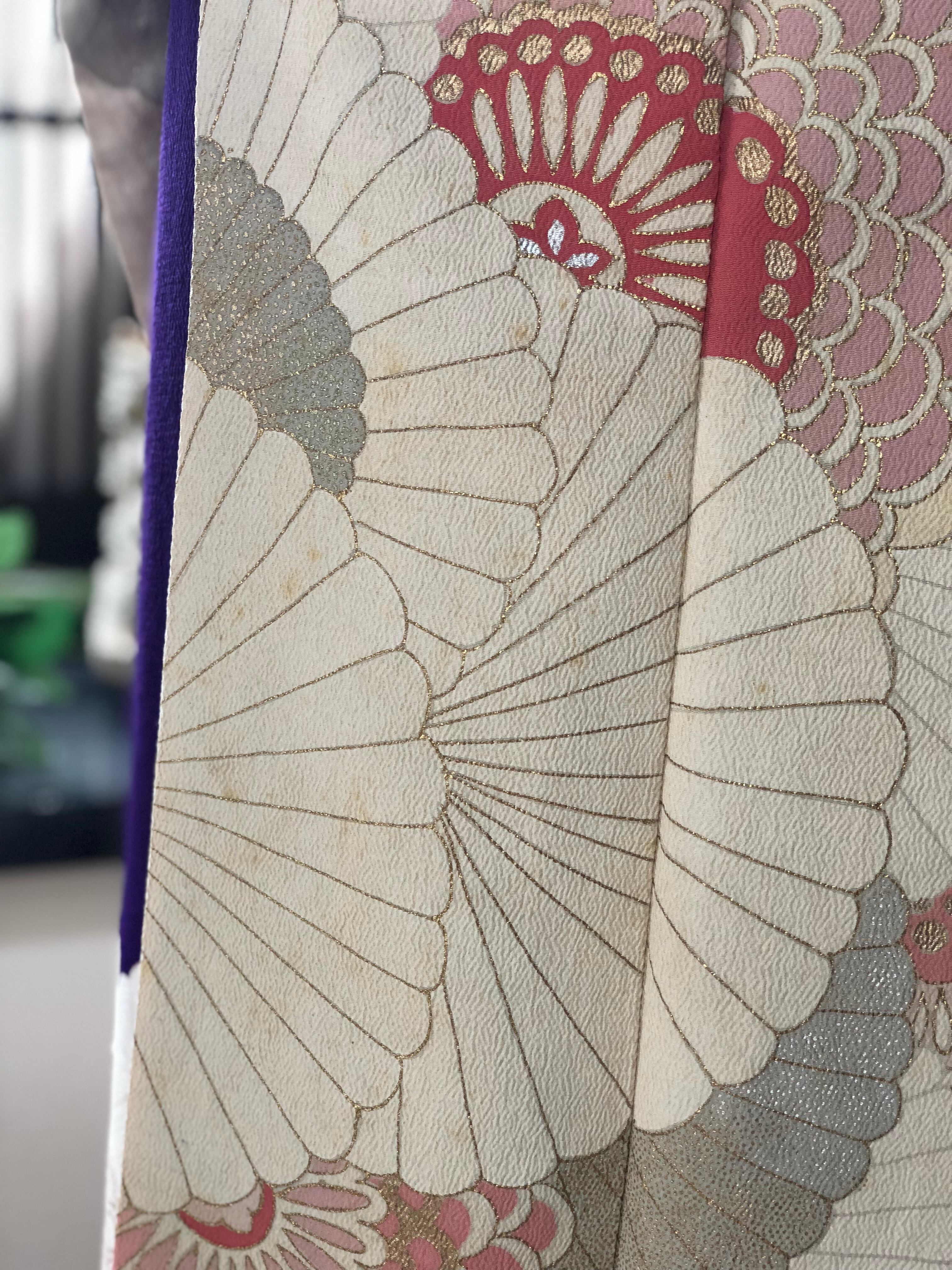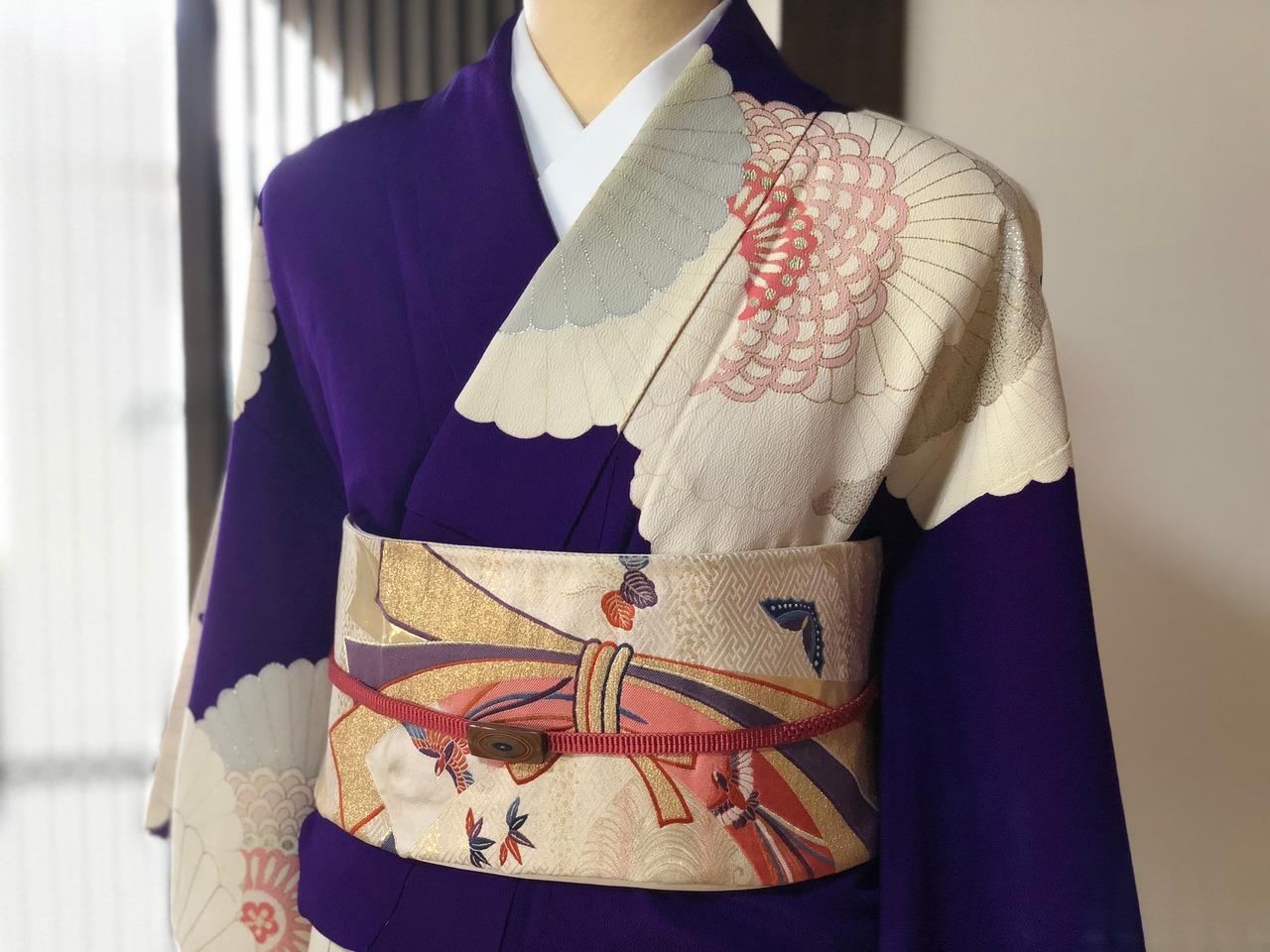 大胆な大輪の菊を幾重にも重ねた柄は、一瞬で視線を奪われてしまいそうです。