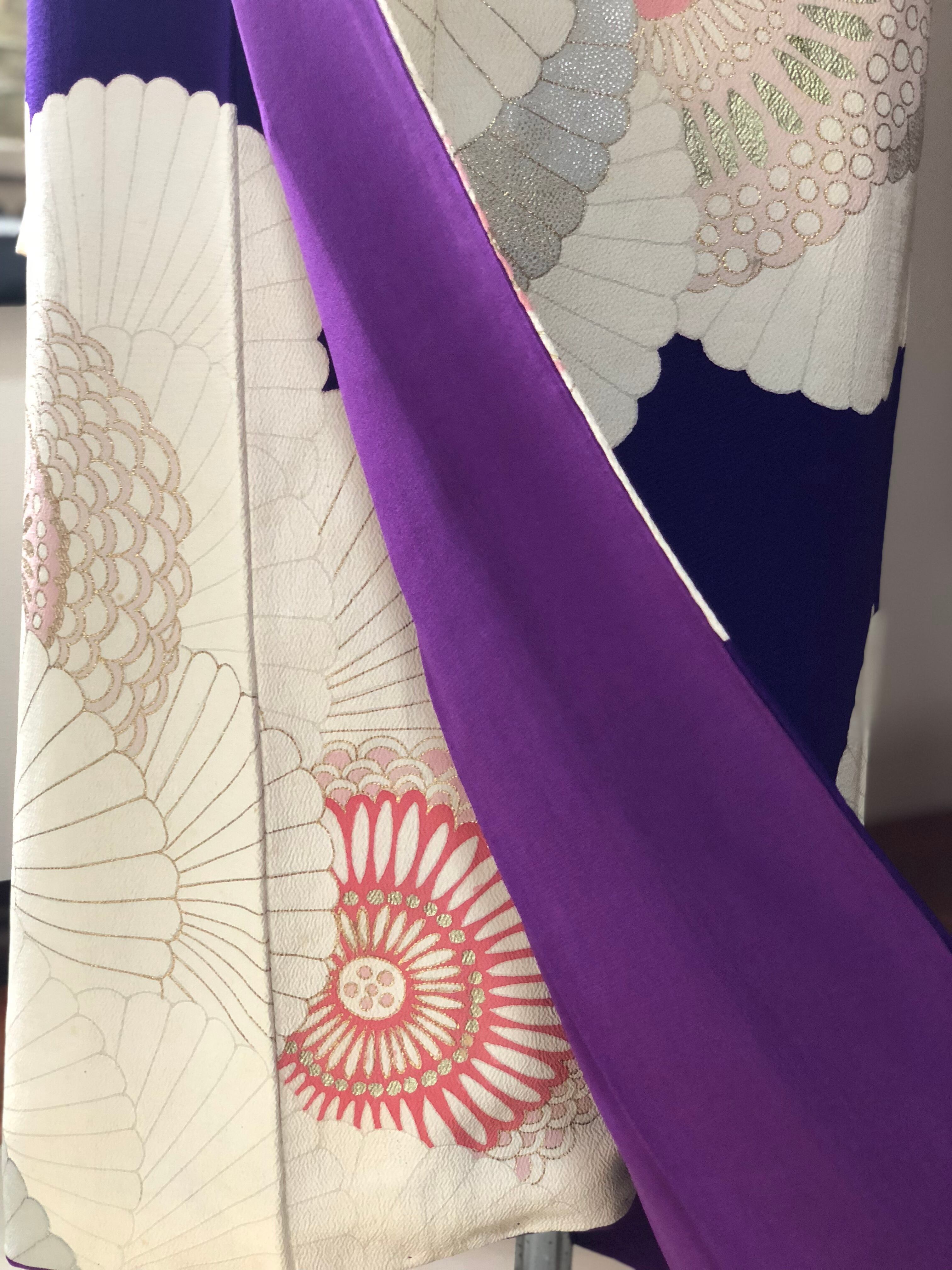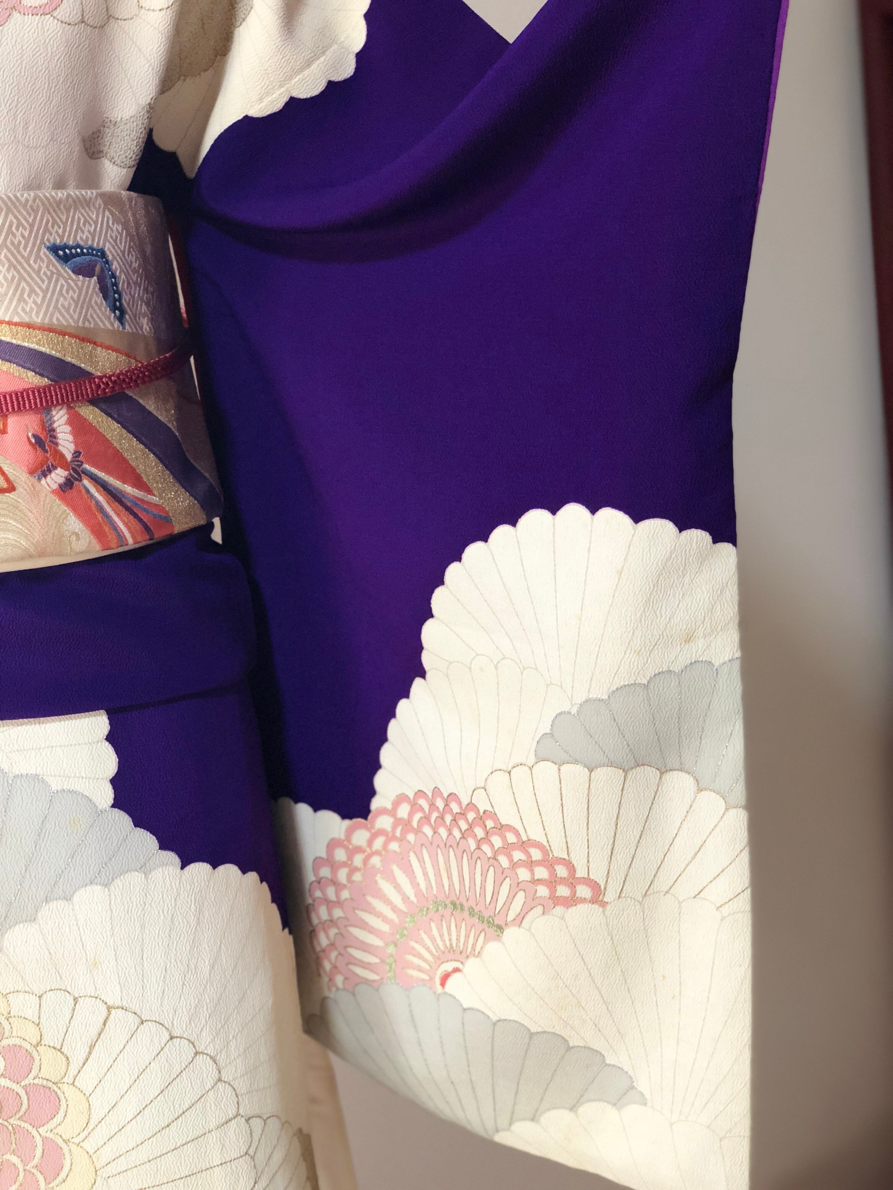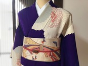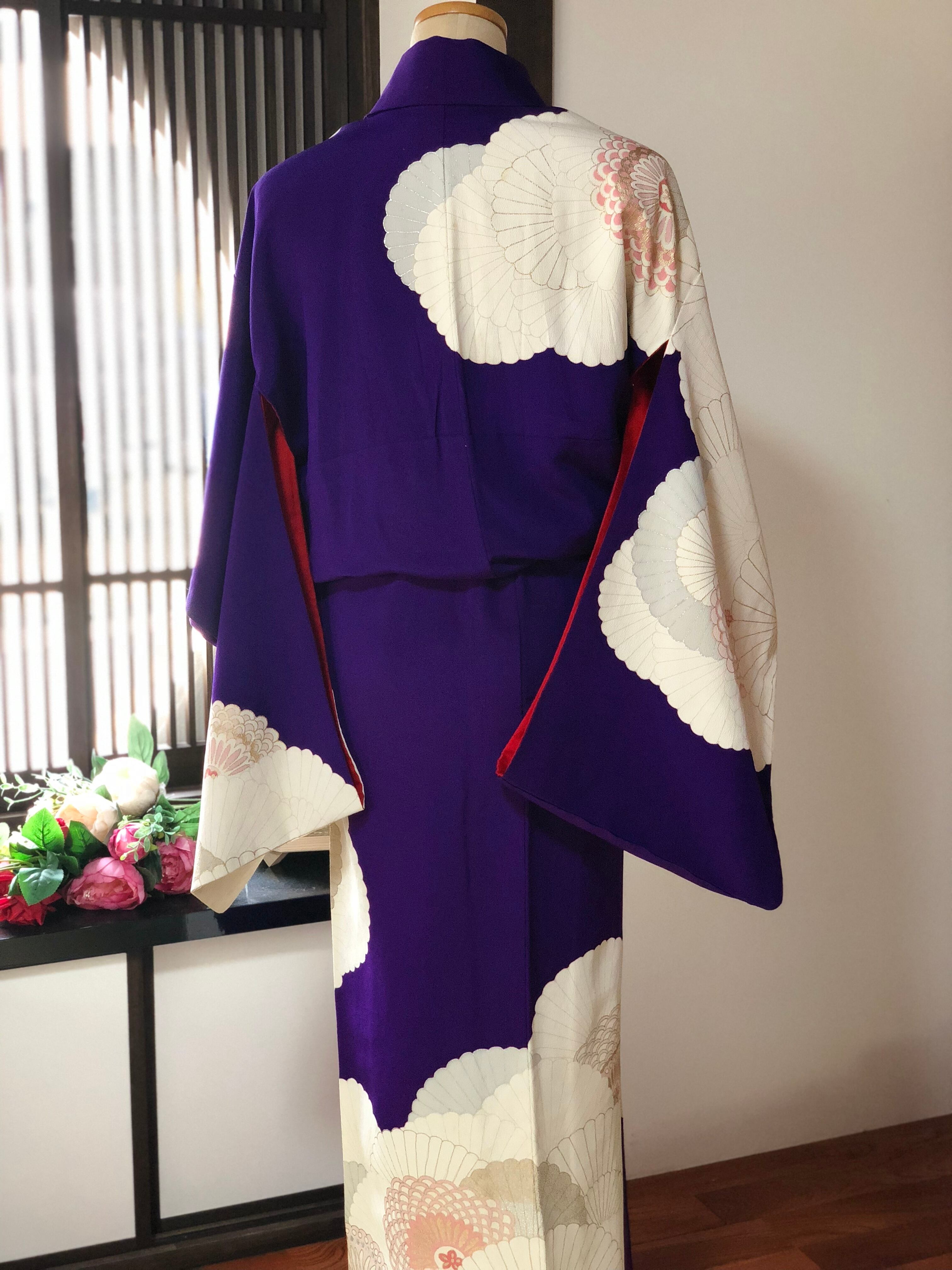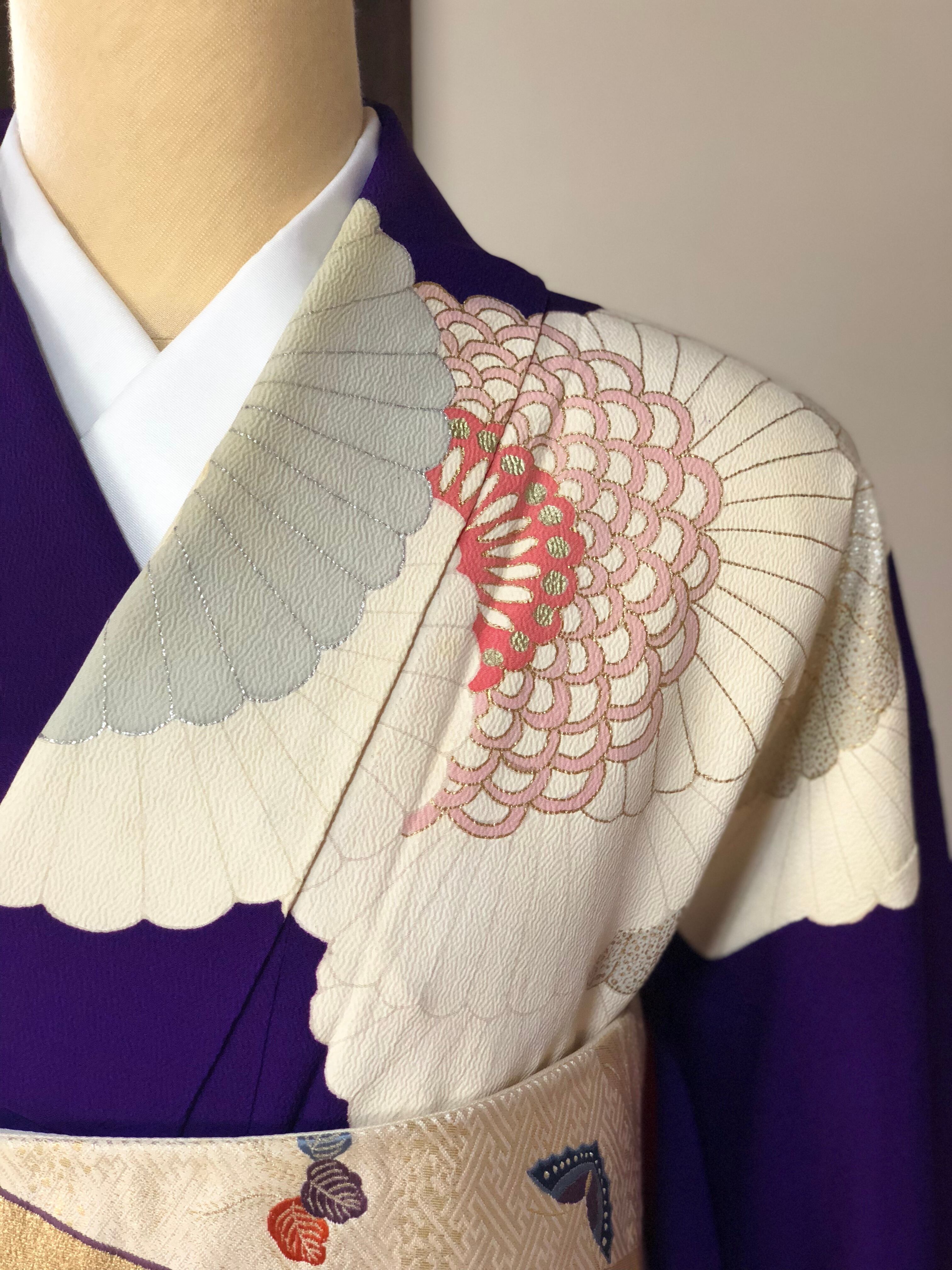 鮮やかな紫と白のコントラストが美しいアンティーク訪問着。