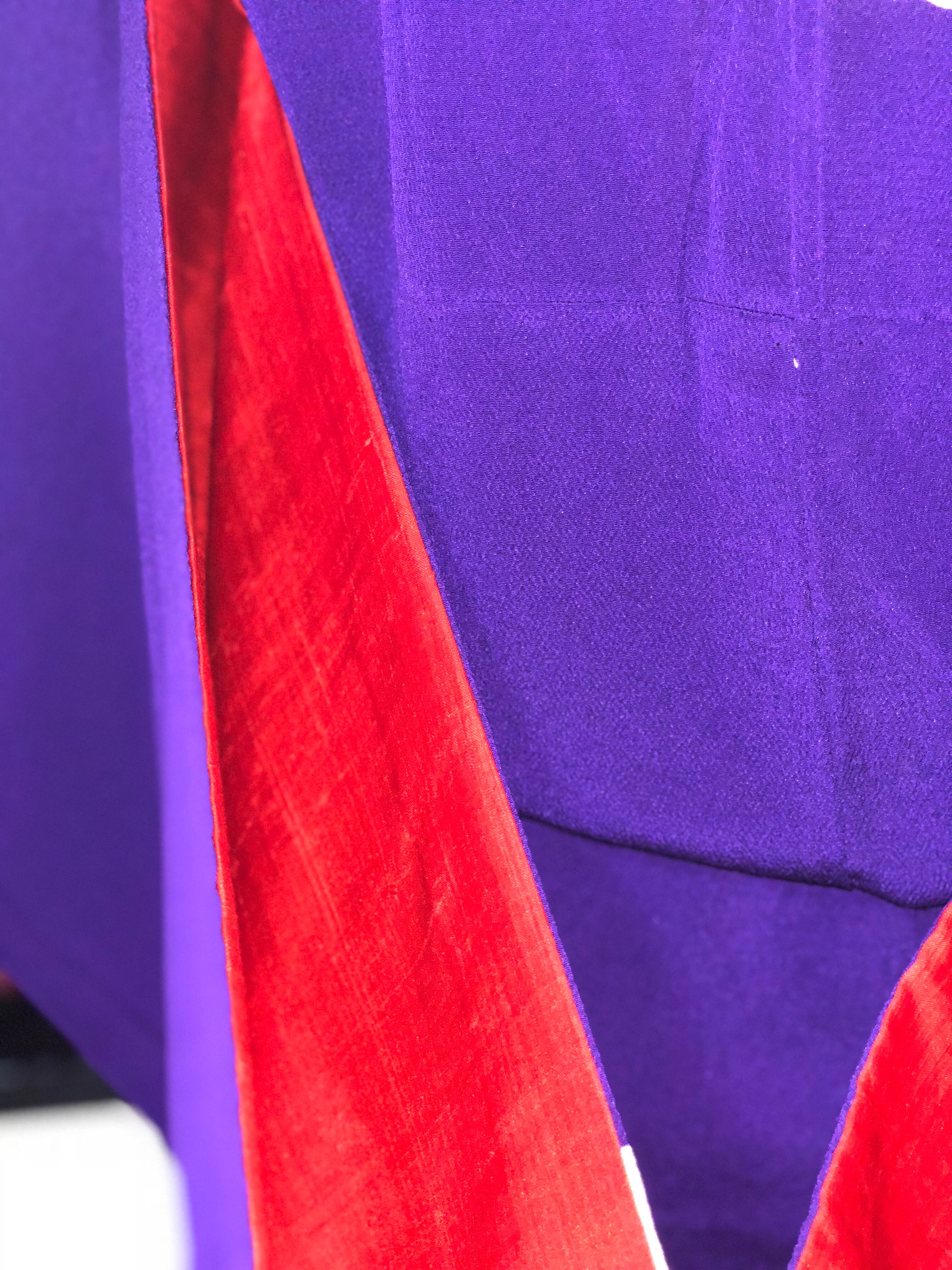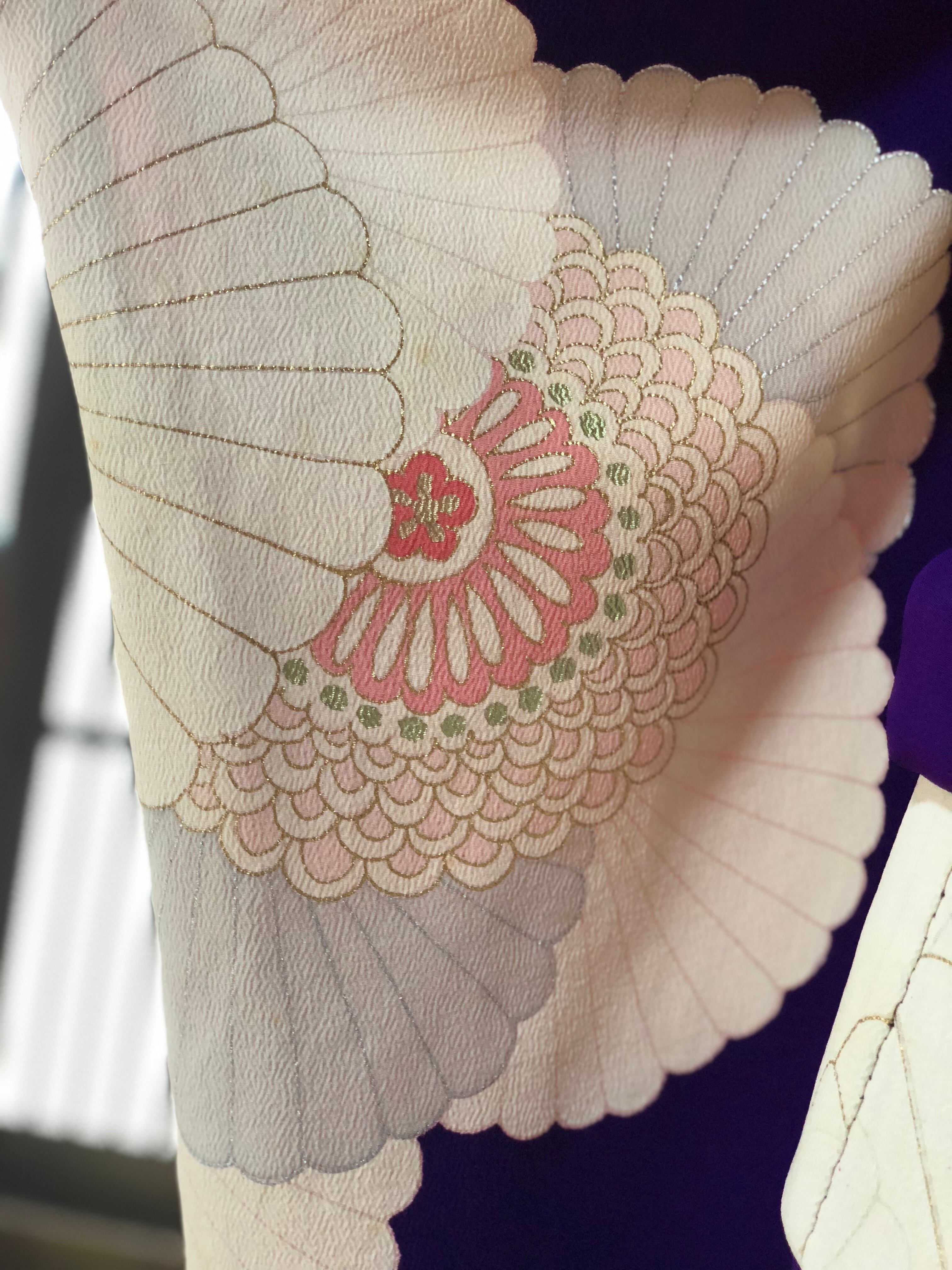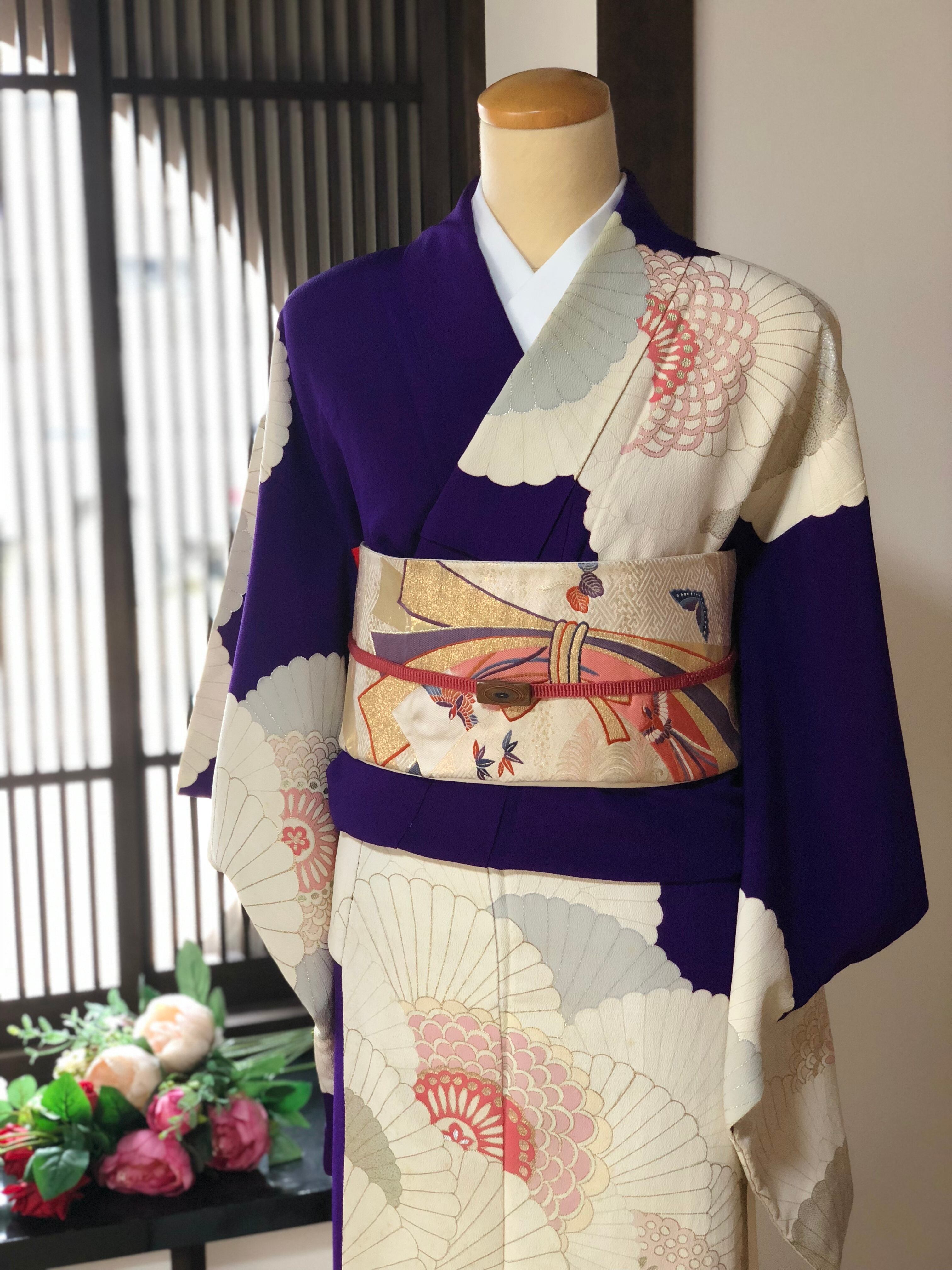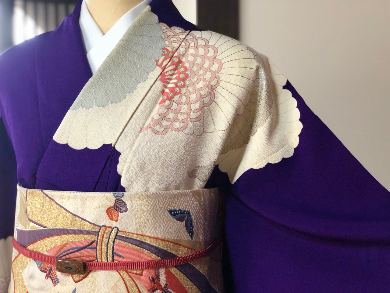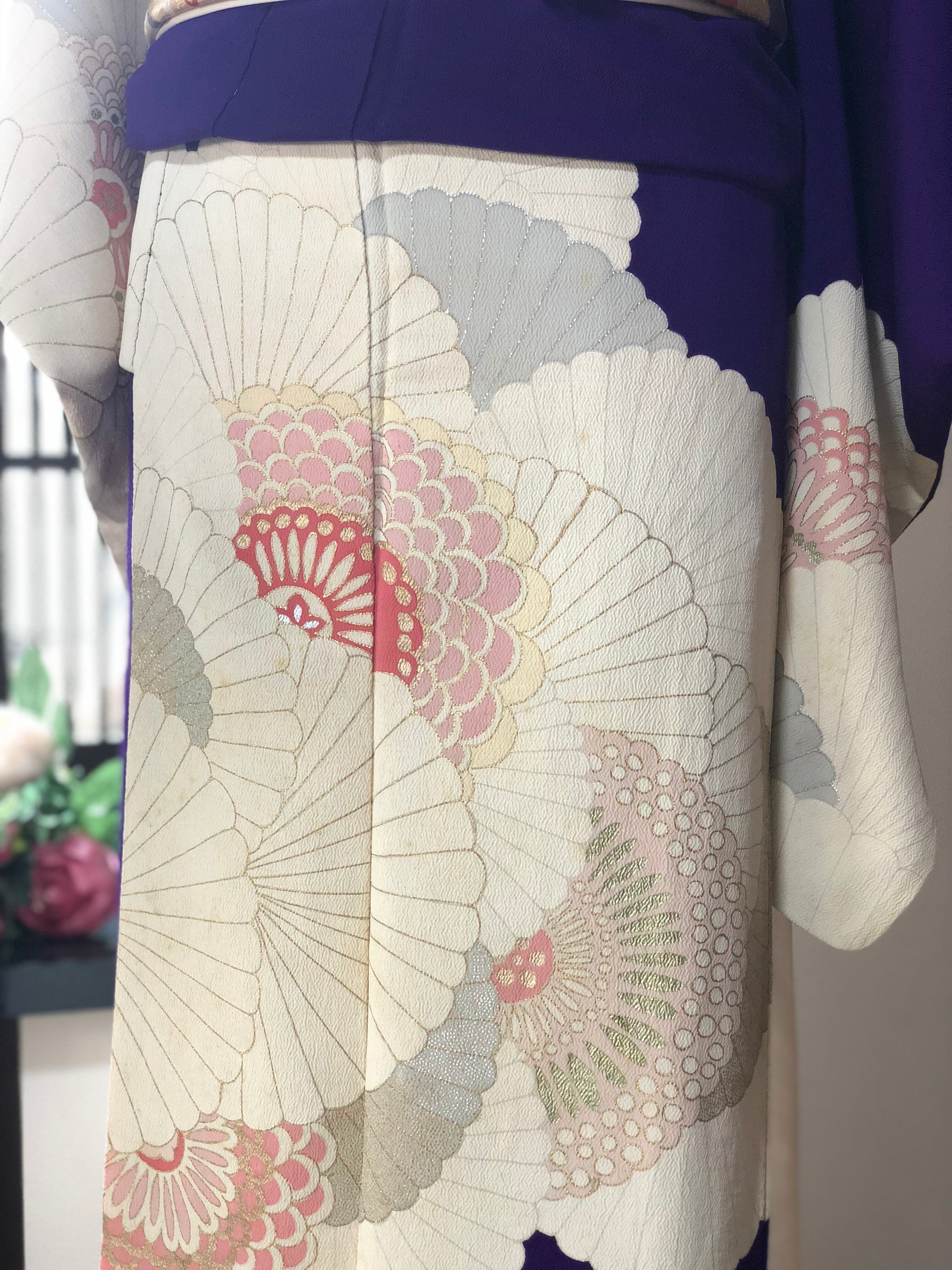 鮮やかな紫と白のコントラストが美しいアンティーク訪問着。