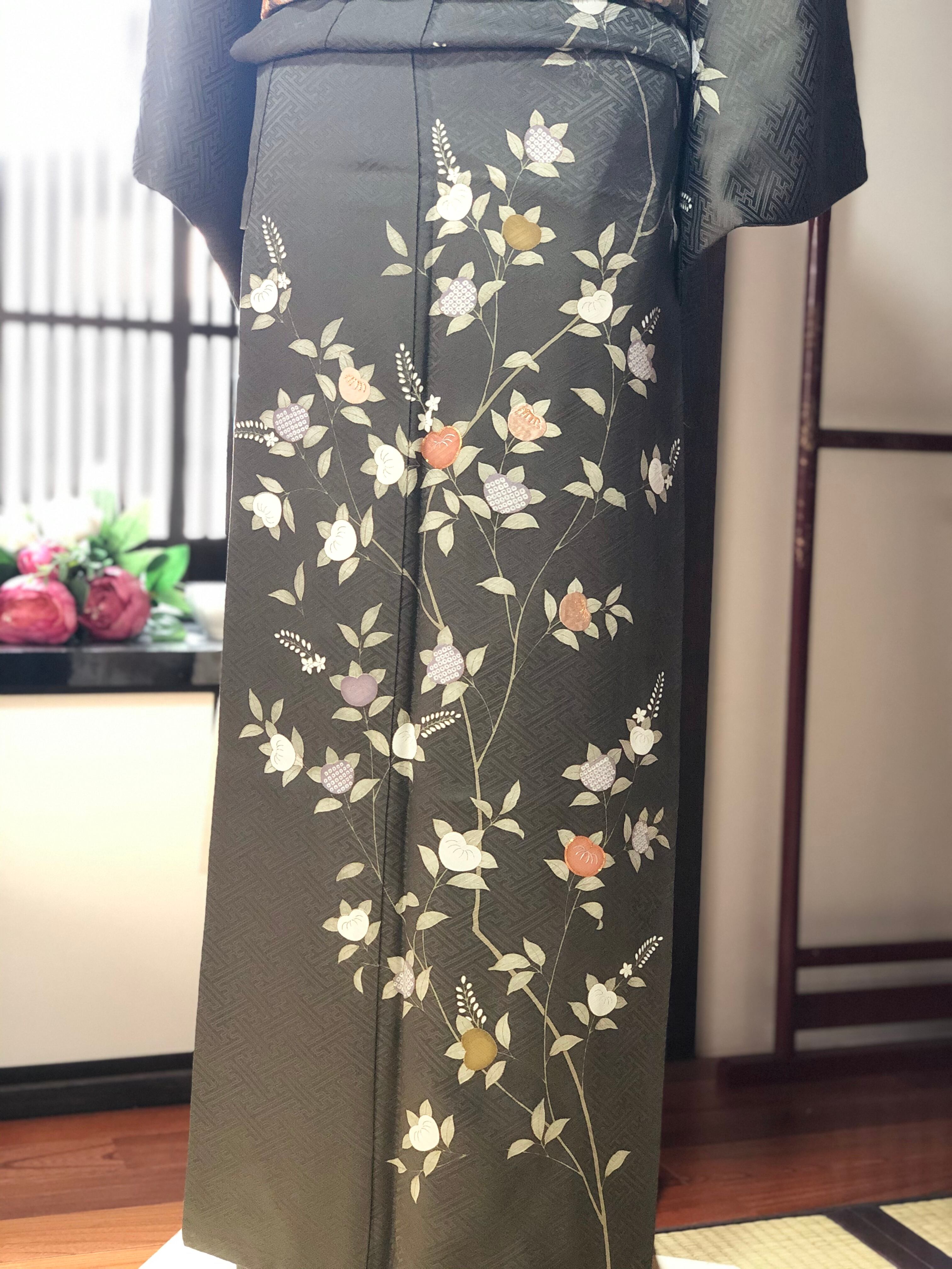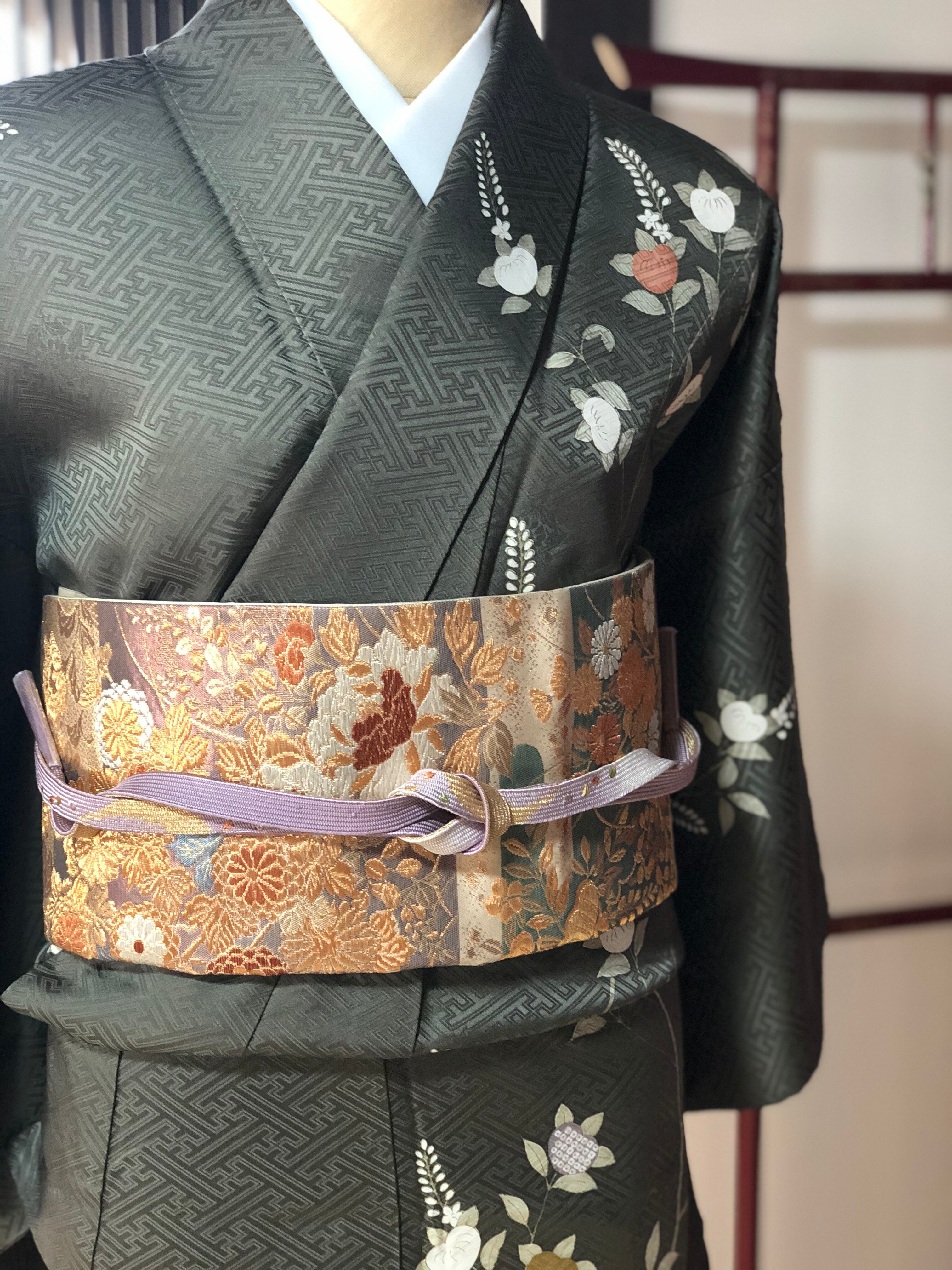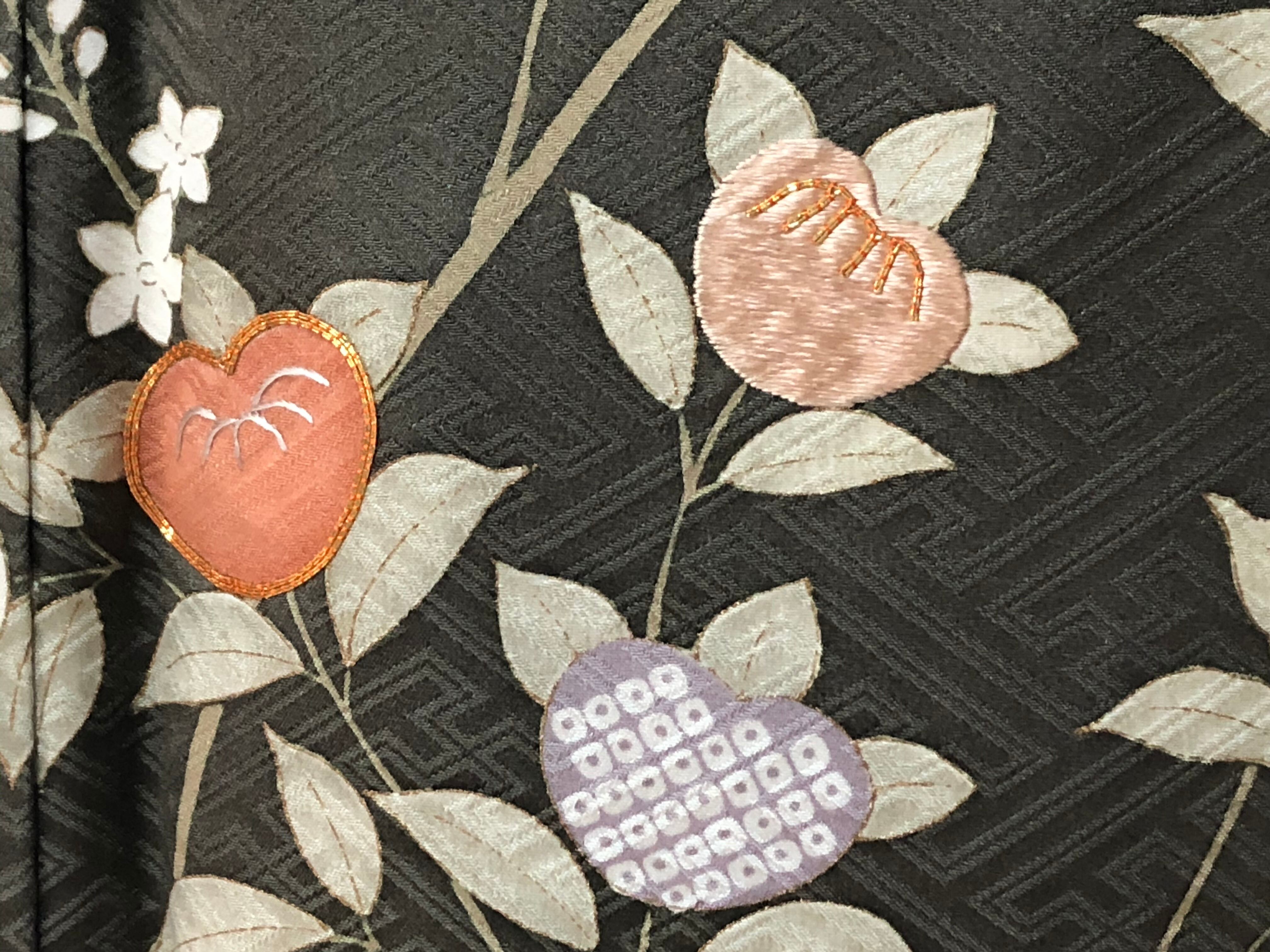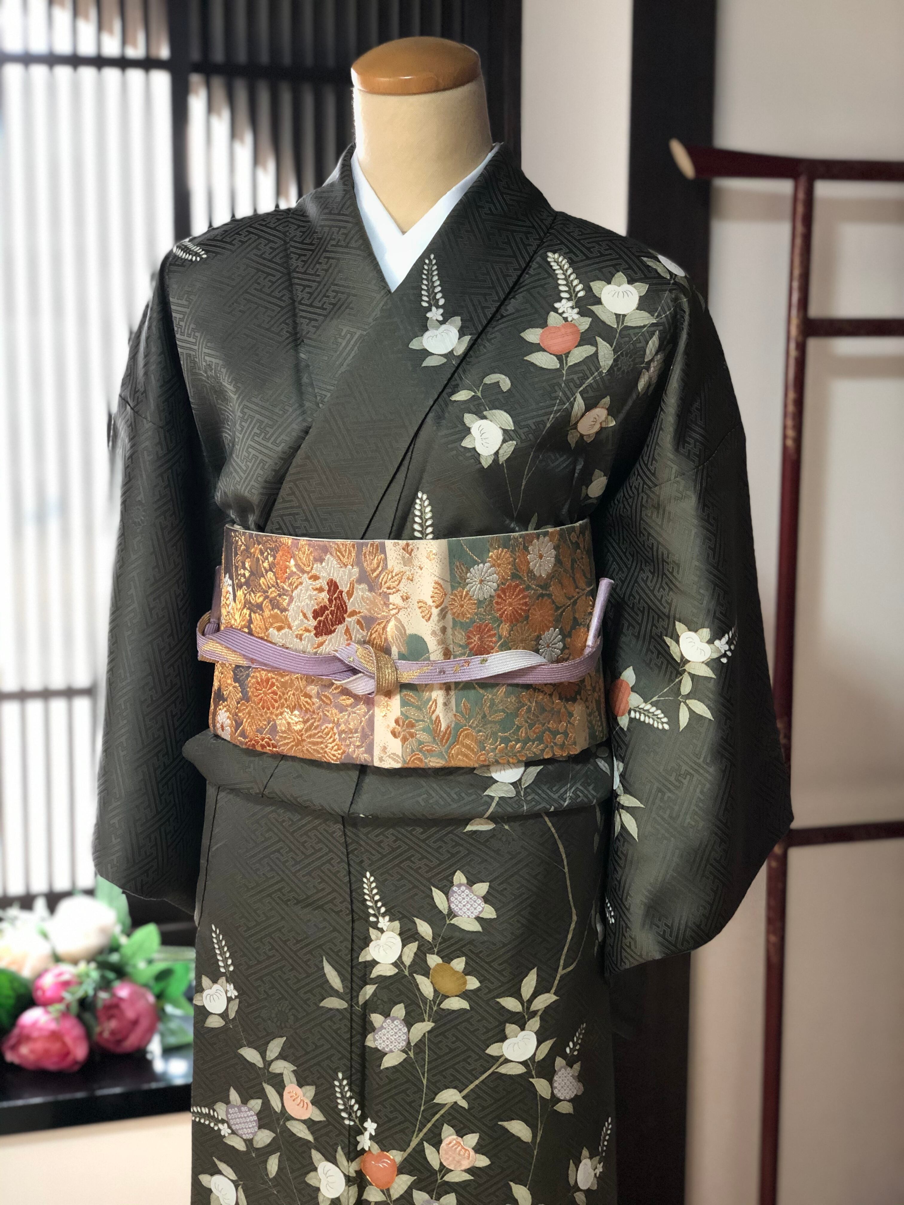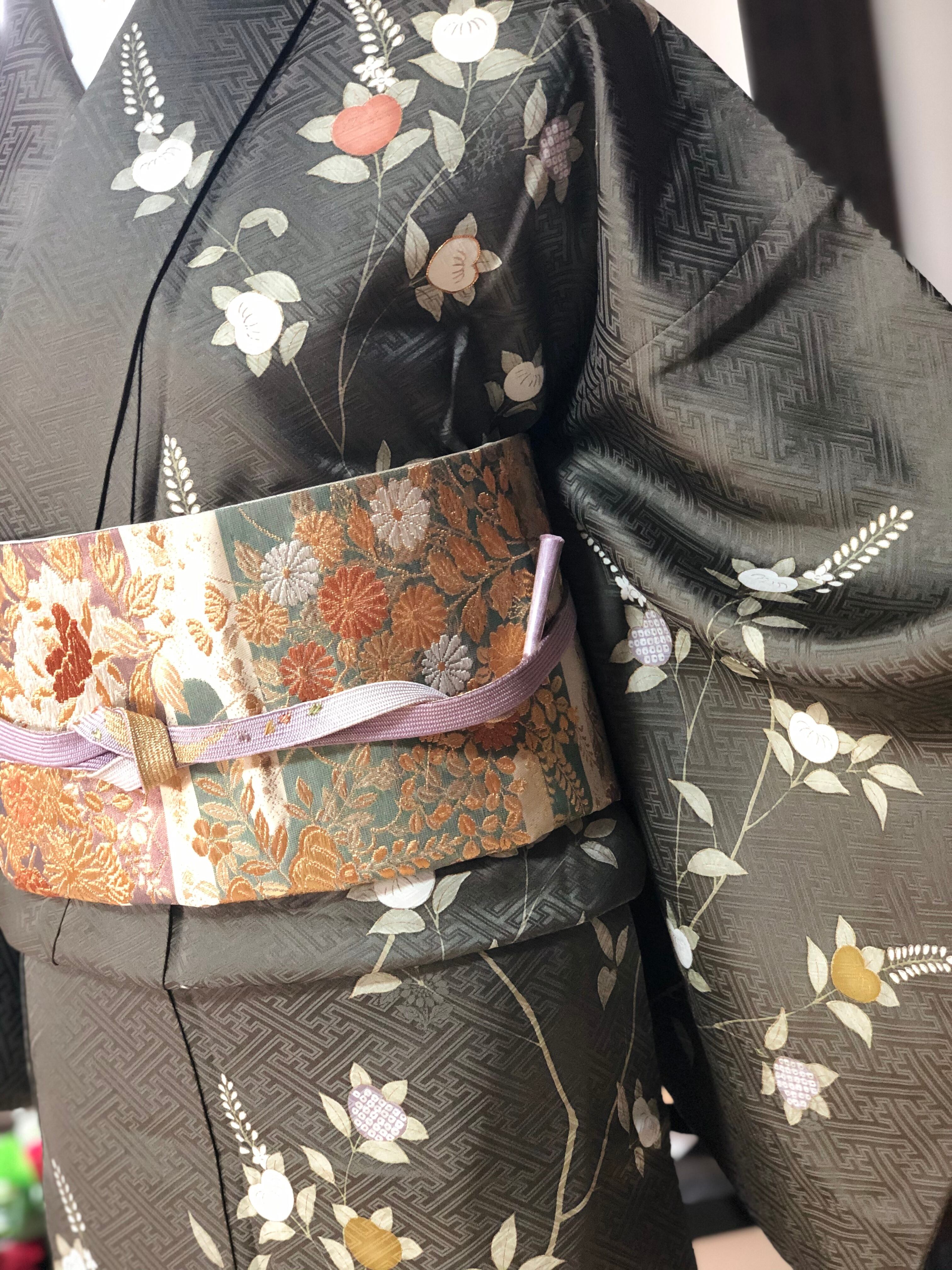 刺繍や金駒刺繍も施され、落ち着いた地色の中に華やかさも併せ持つ訪問着です♪