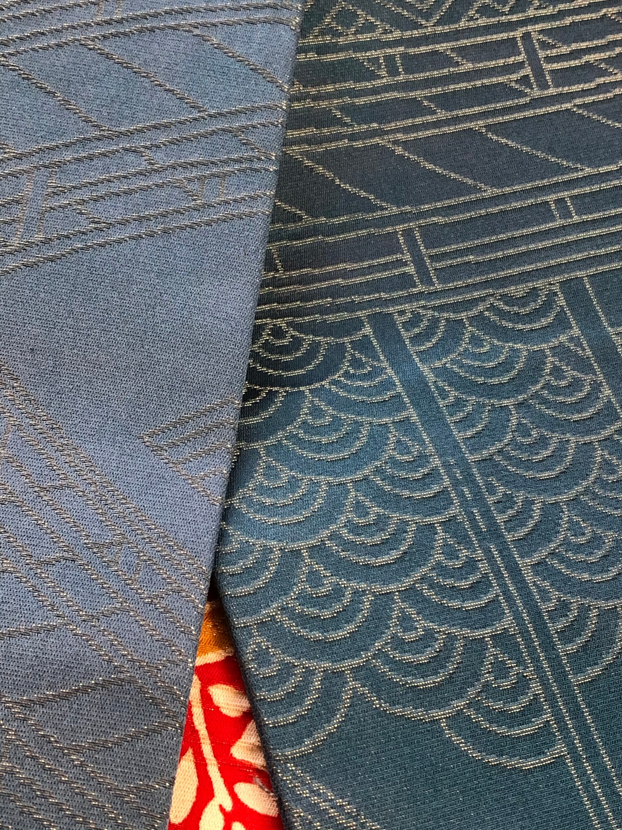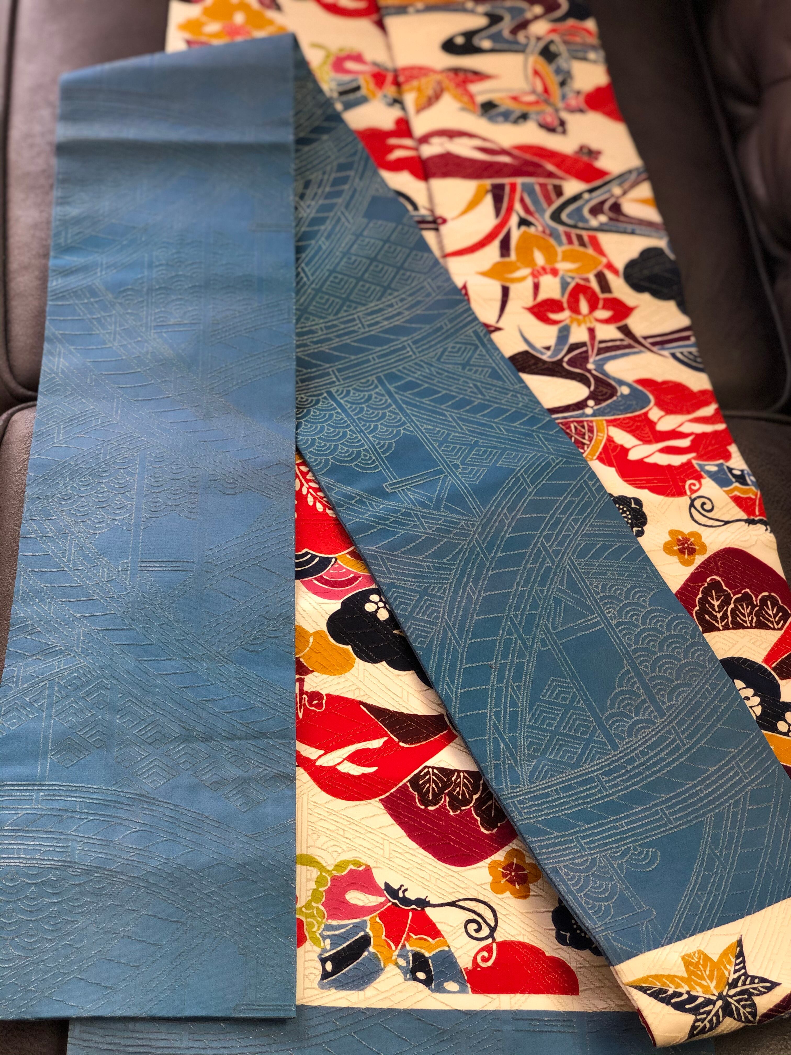 裏も青海波のブルーに金糸がとても美しいので、手先やタレ先からちらっと見えるのがお洒落ですね。