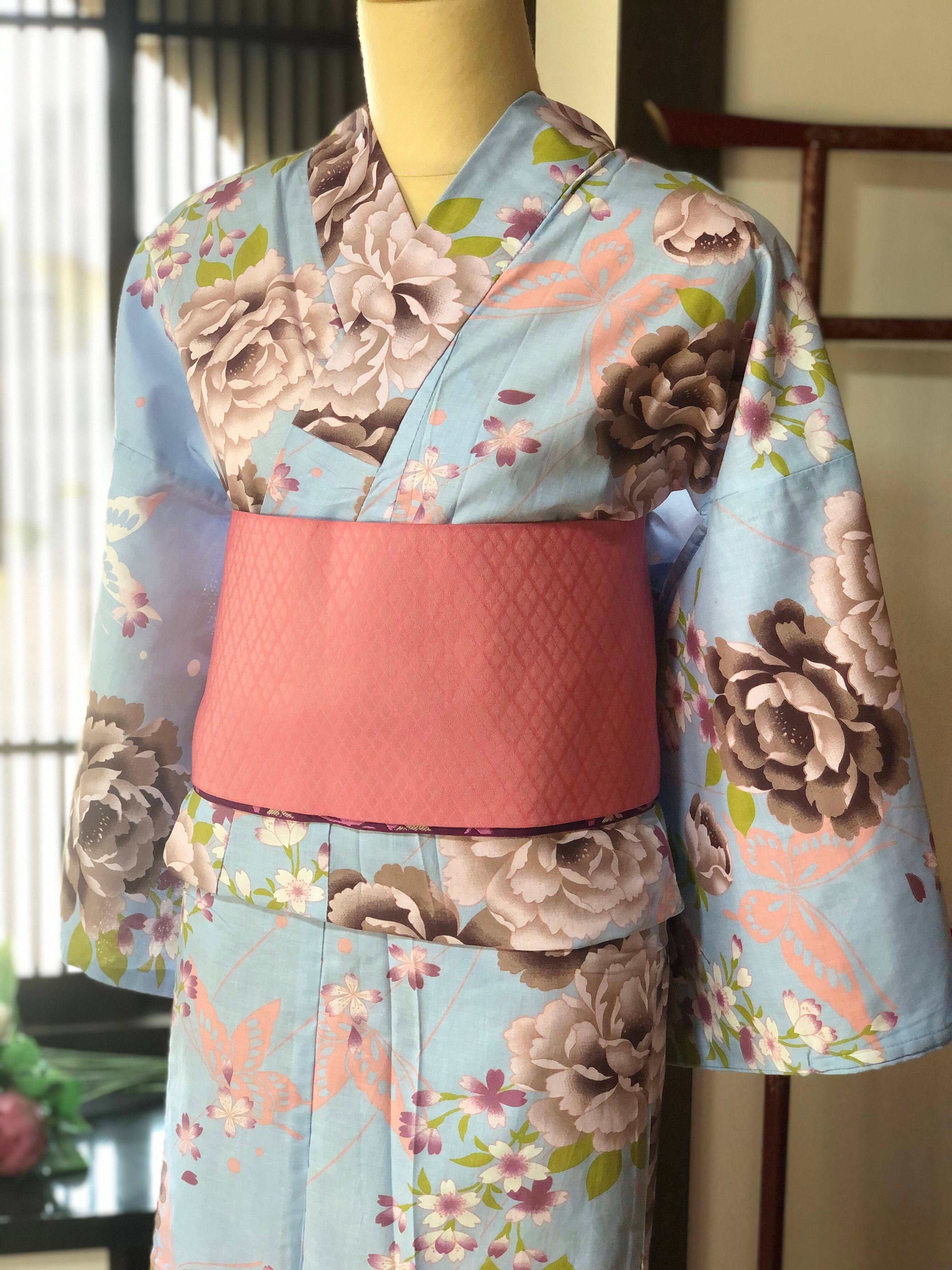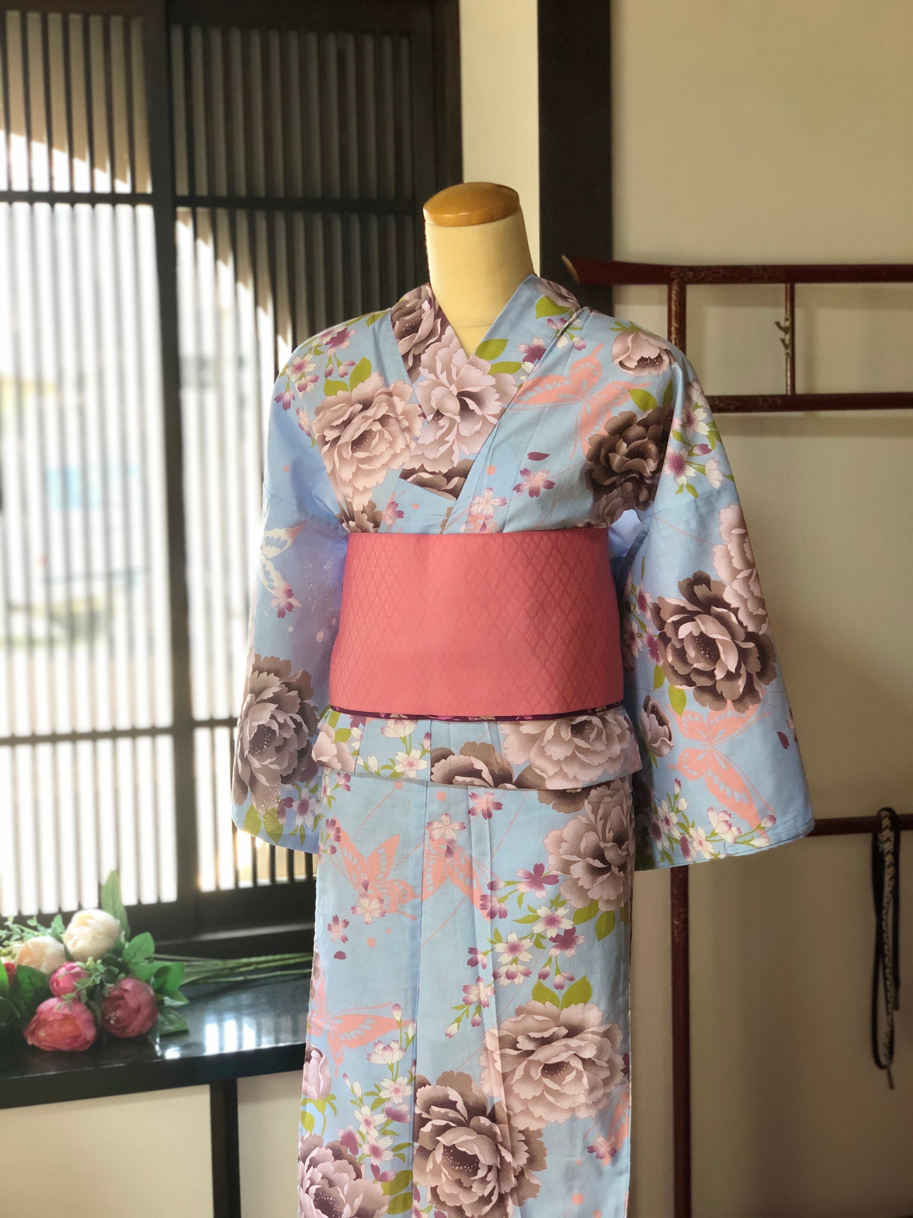 爽やかな水色地に淡い色の薔薇が素敵な浴衣です♪