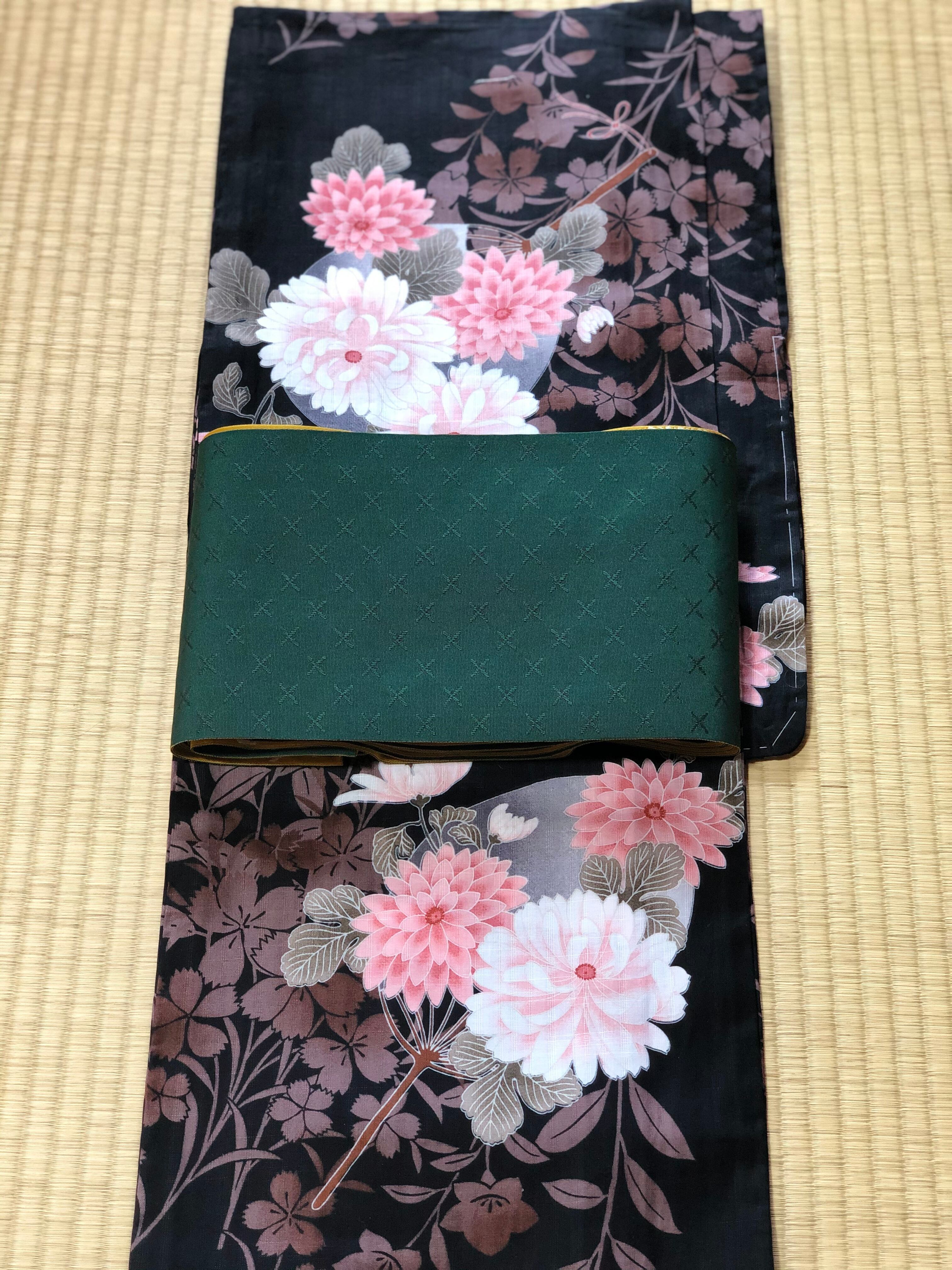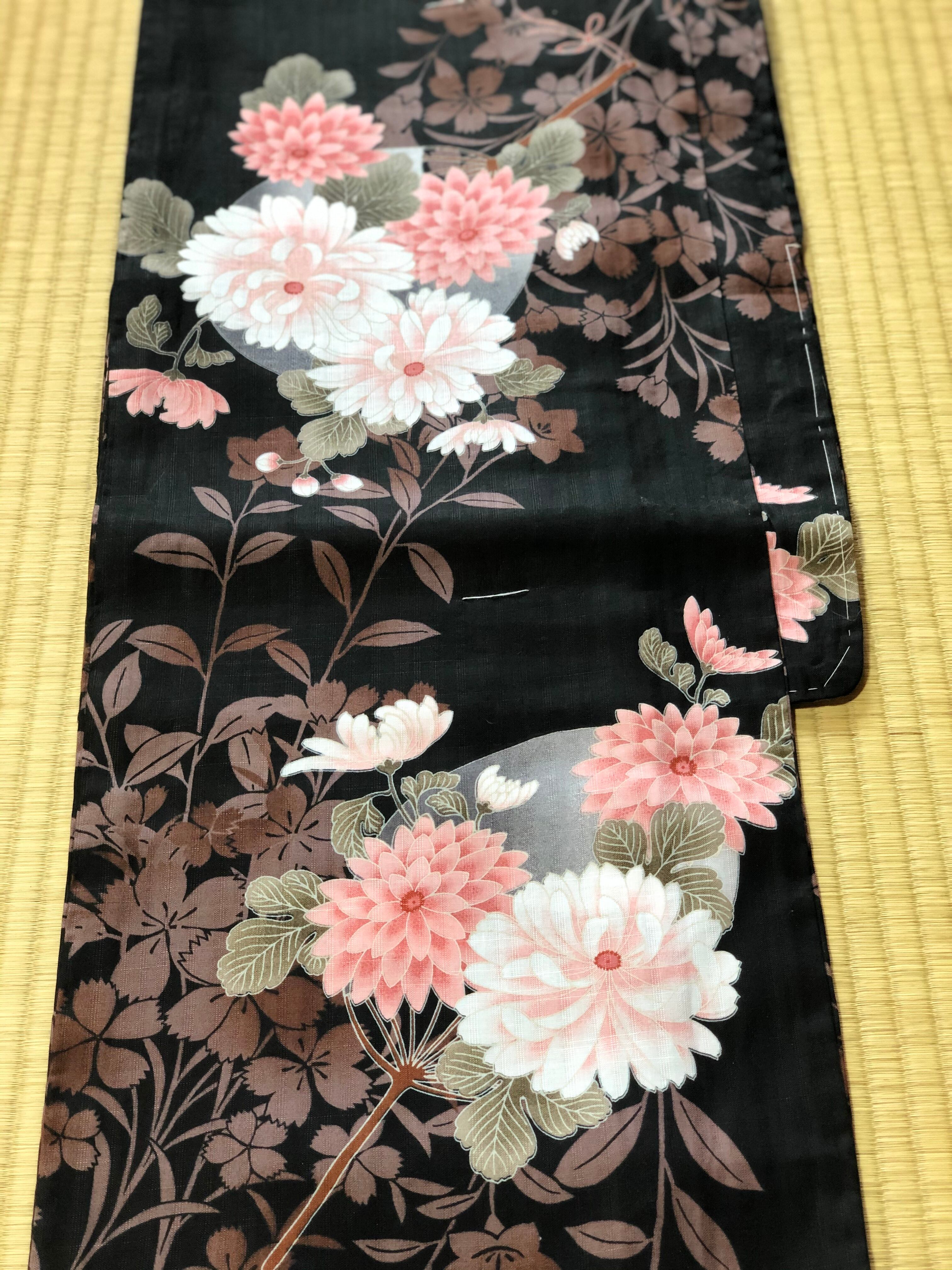 黒地菊柄浴衣 新品
