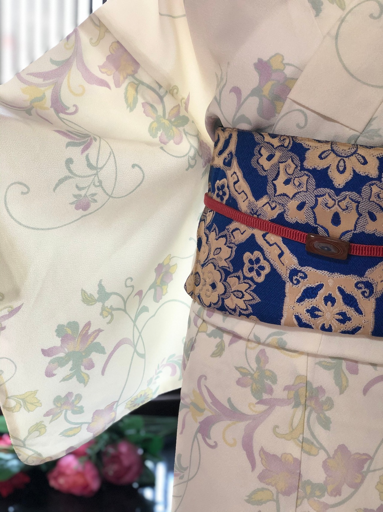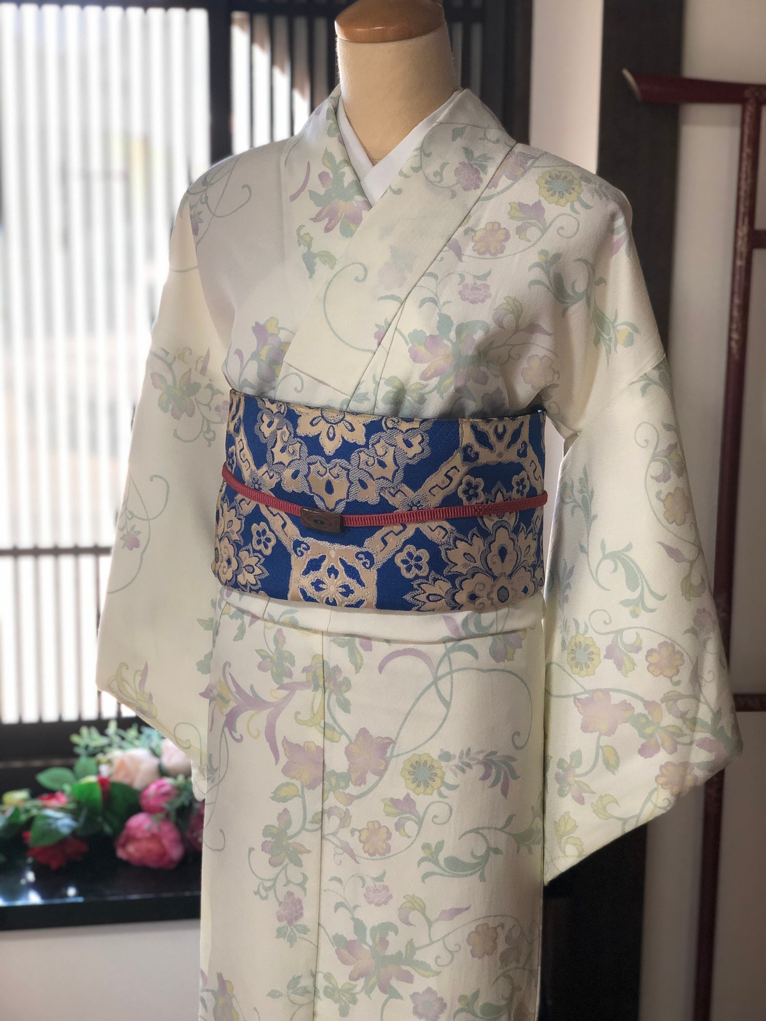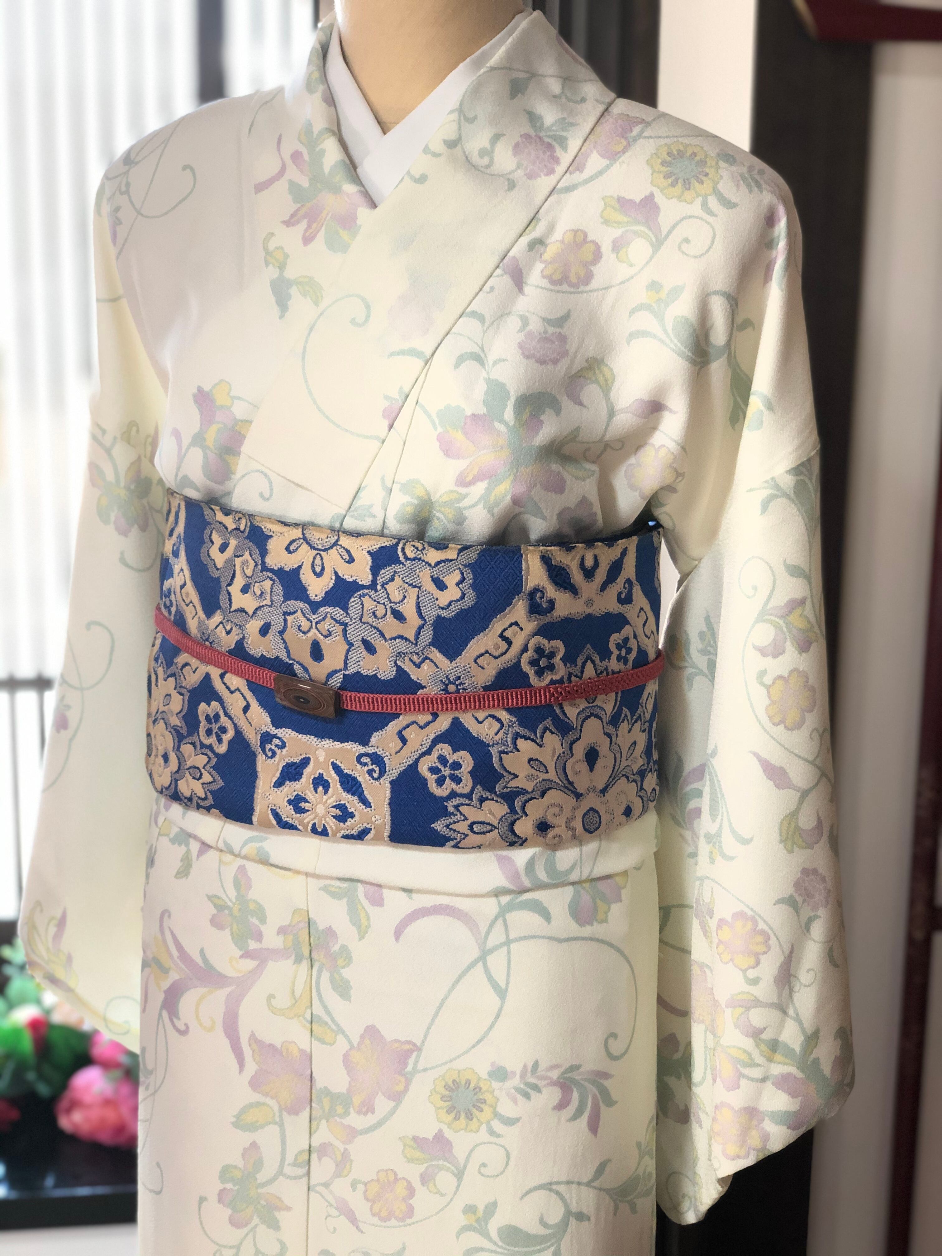 アイボリー地パステル草花洗える小紋