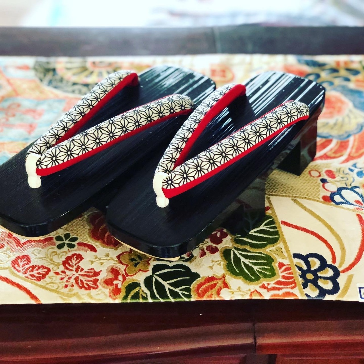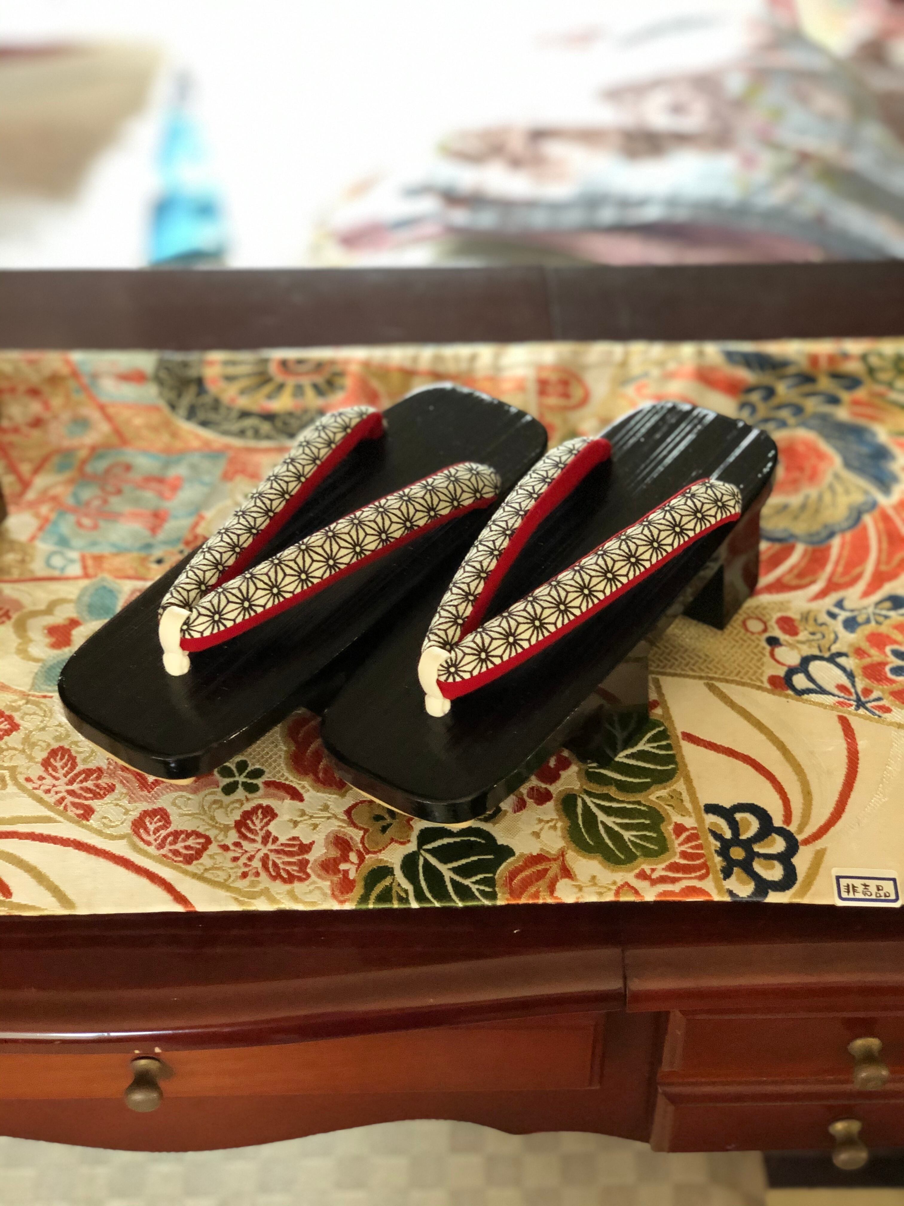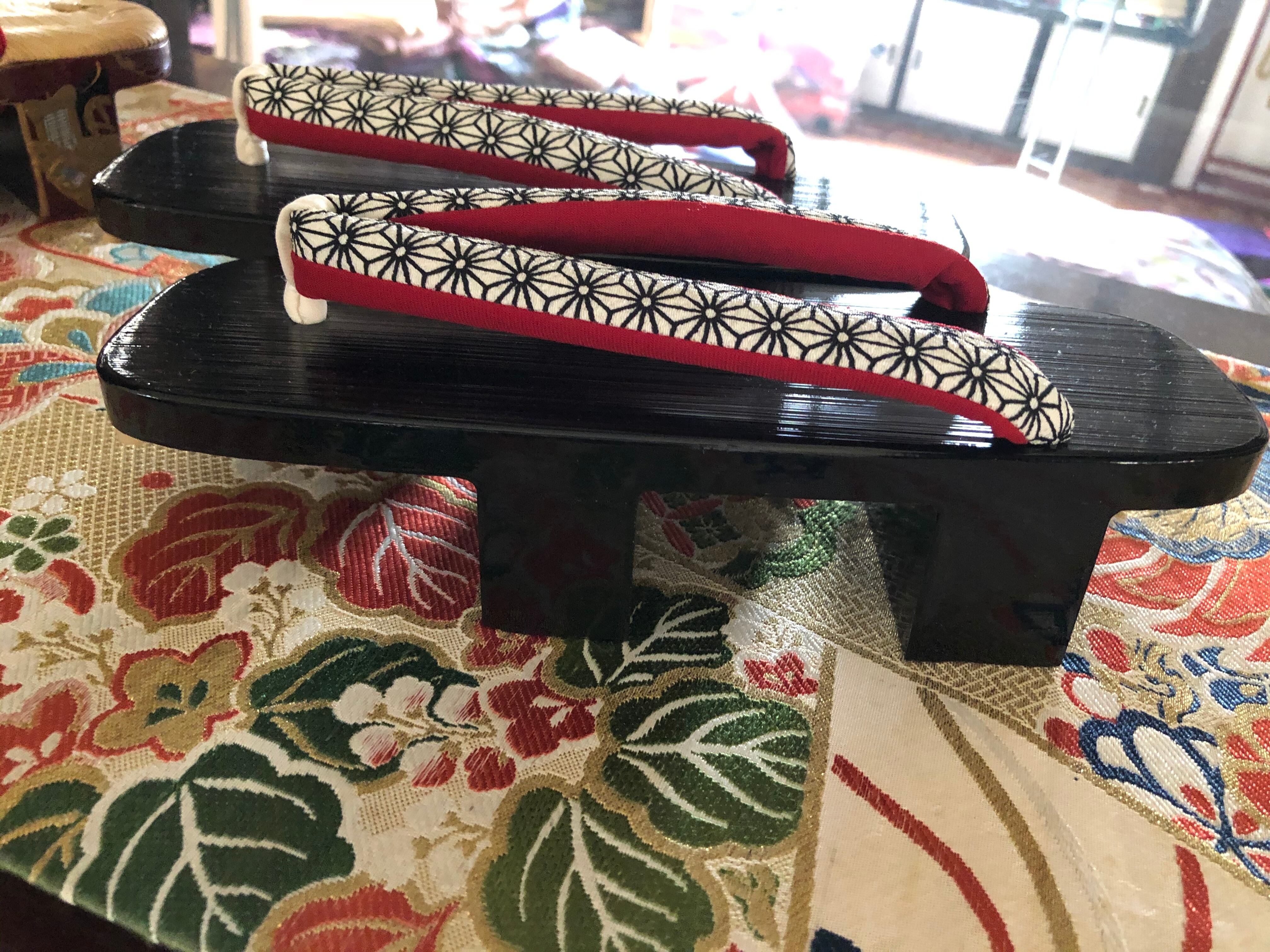 黒塗り下駄 麻の葉鼻緒