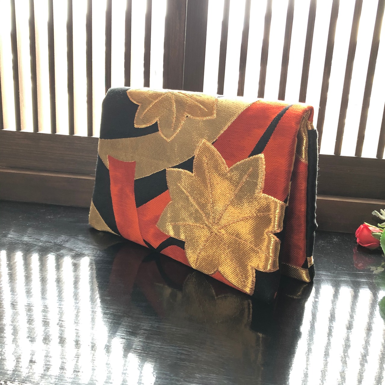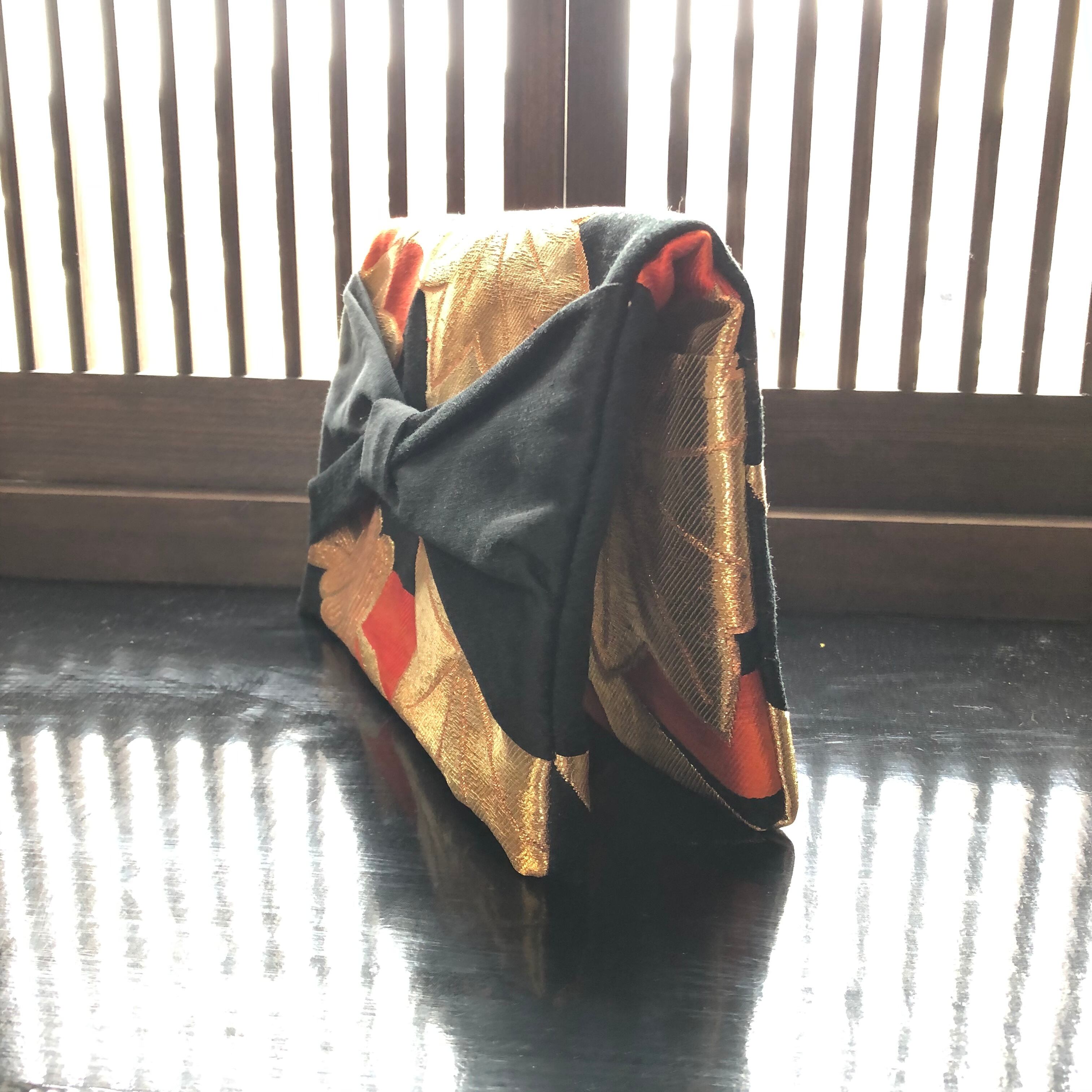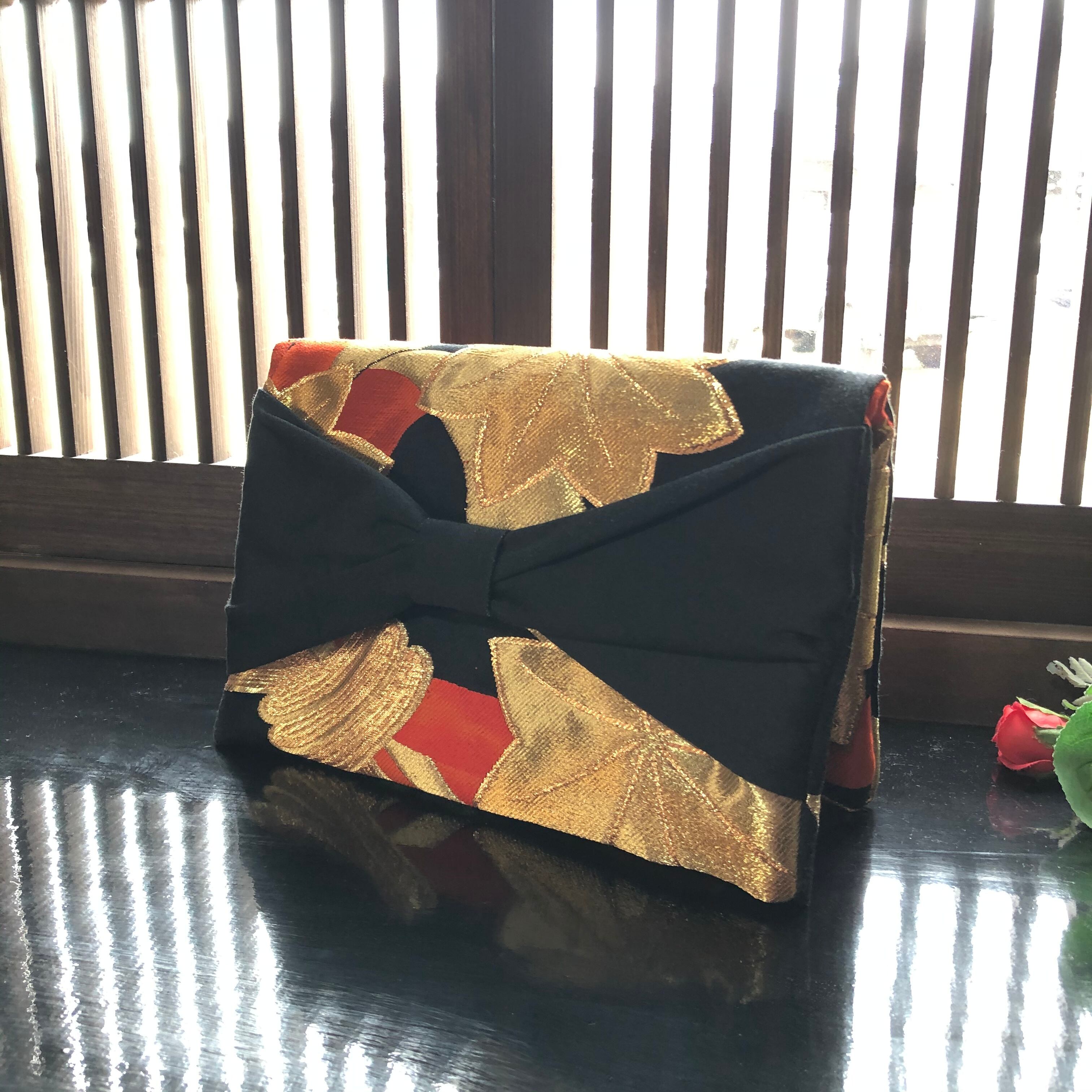 贅沢に袋帯を使ったリボンクラッチバッグ