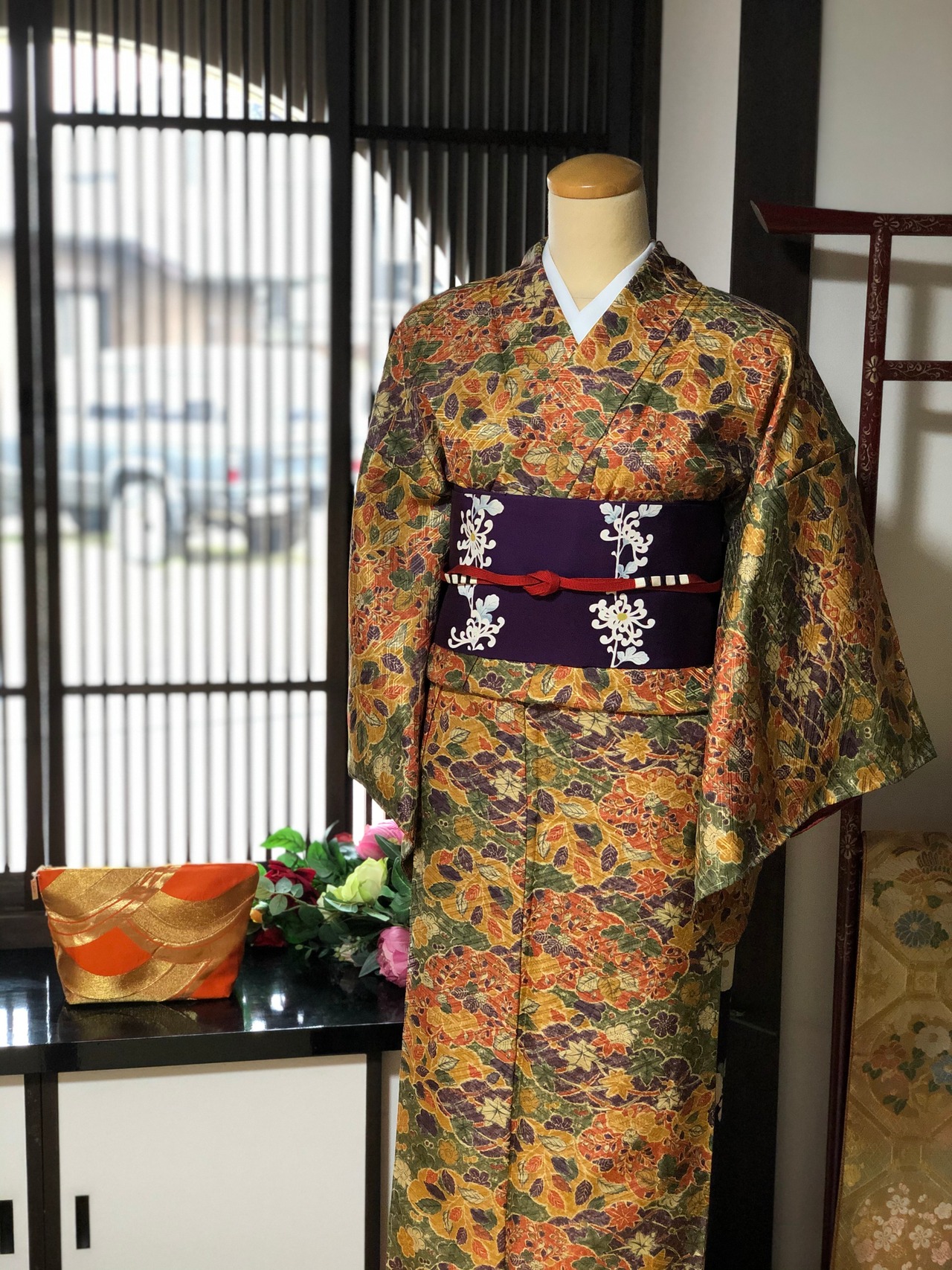 洗える着物なので、お天気が心配なときでも気軽に着ていけますね。