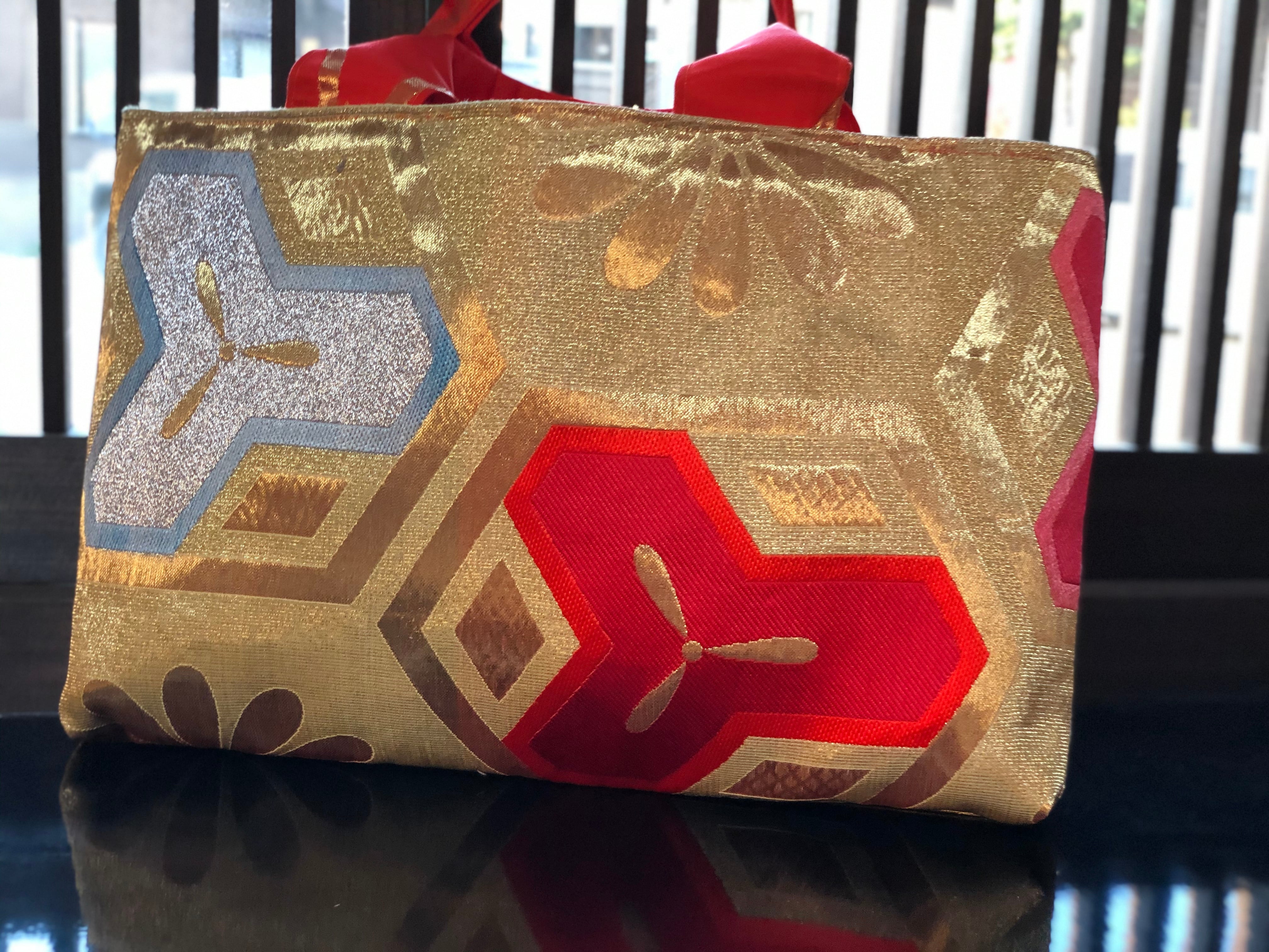 帯トートバッグ ゴールド 変わり毘沙門柄