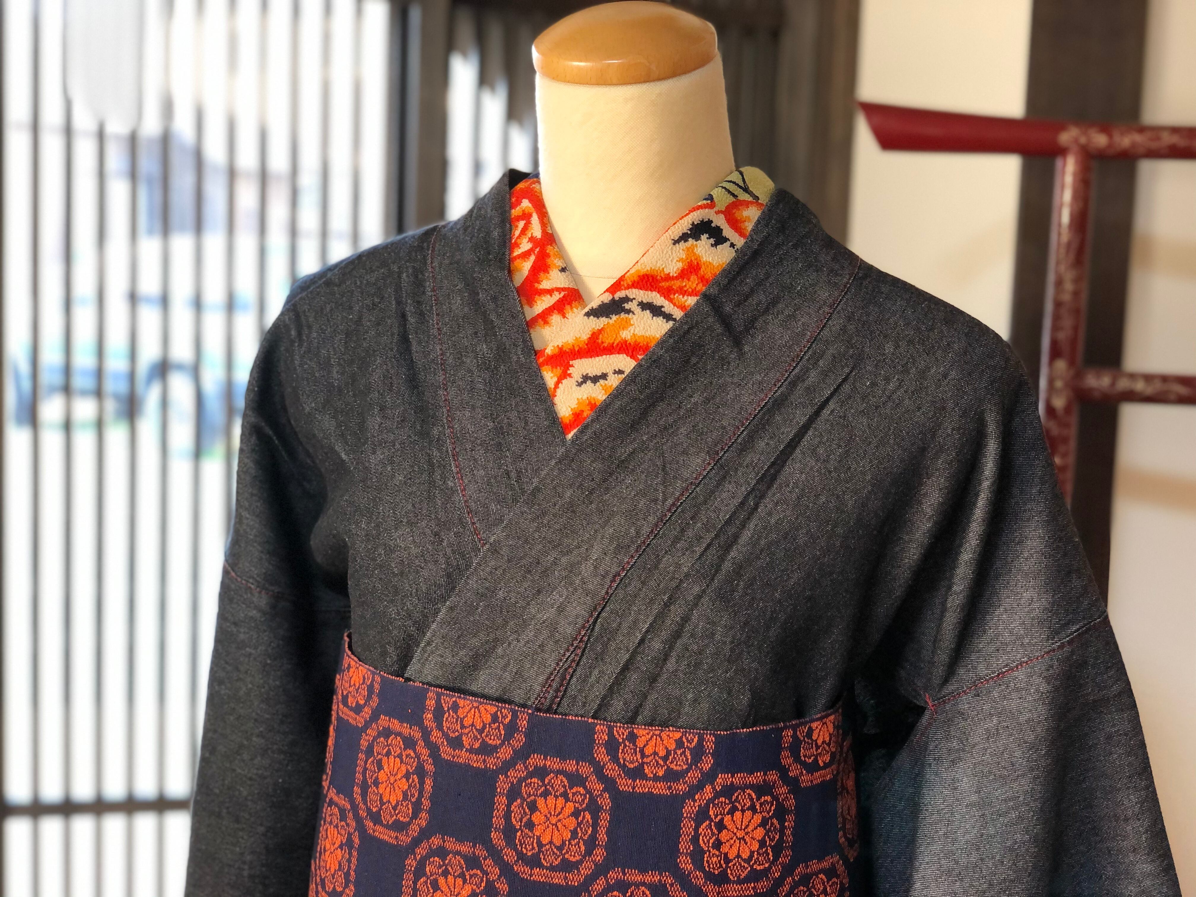人気のデニム着物、ブラックMサイズです♪