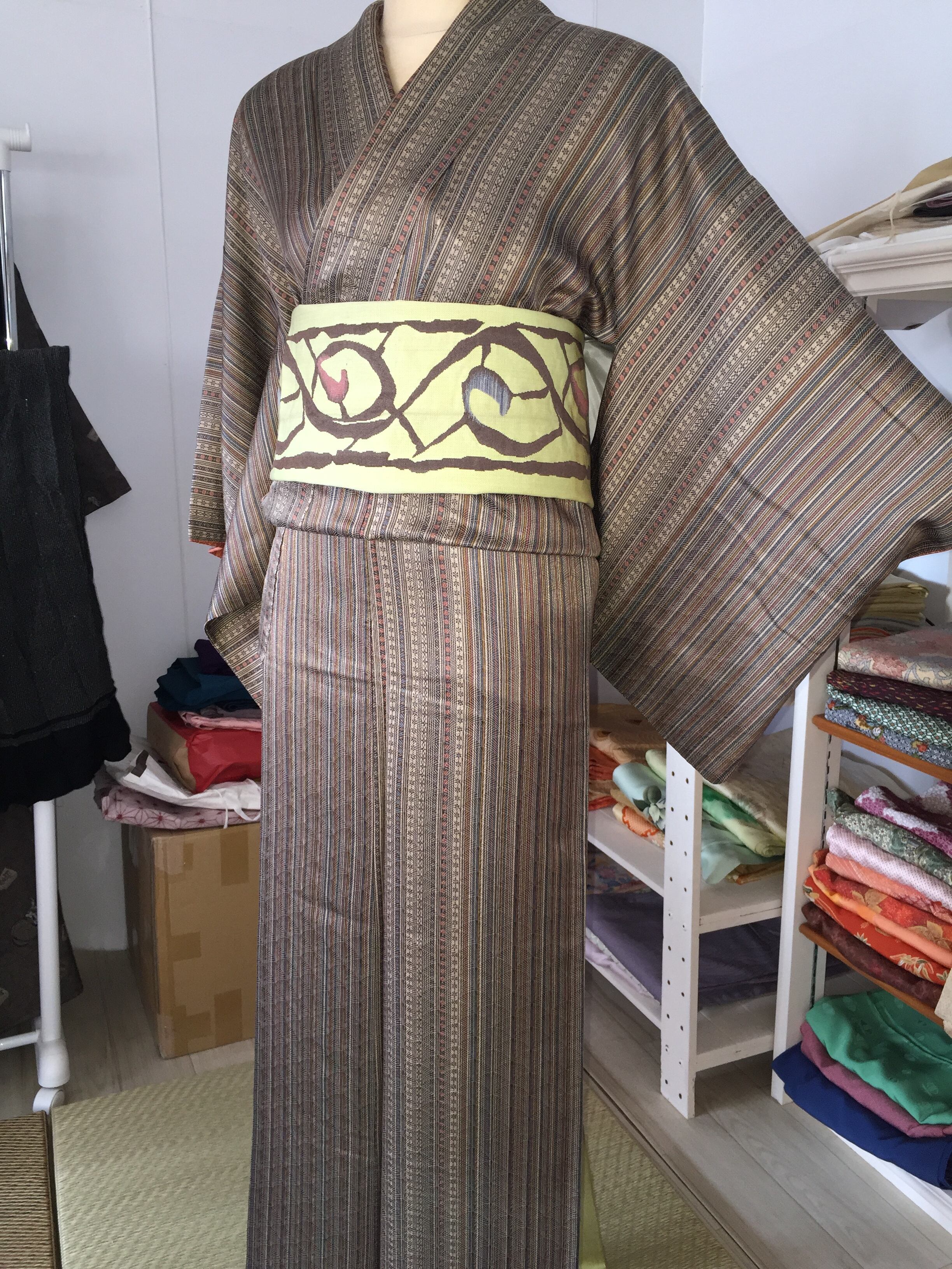 渋系縦縞小紋 | 和布 まつだ