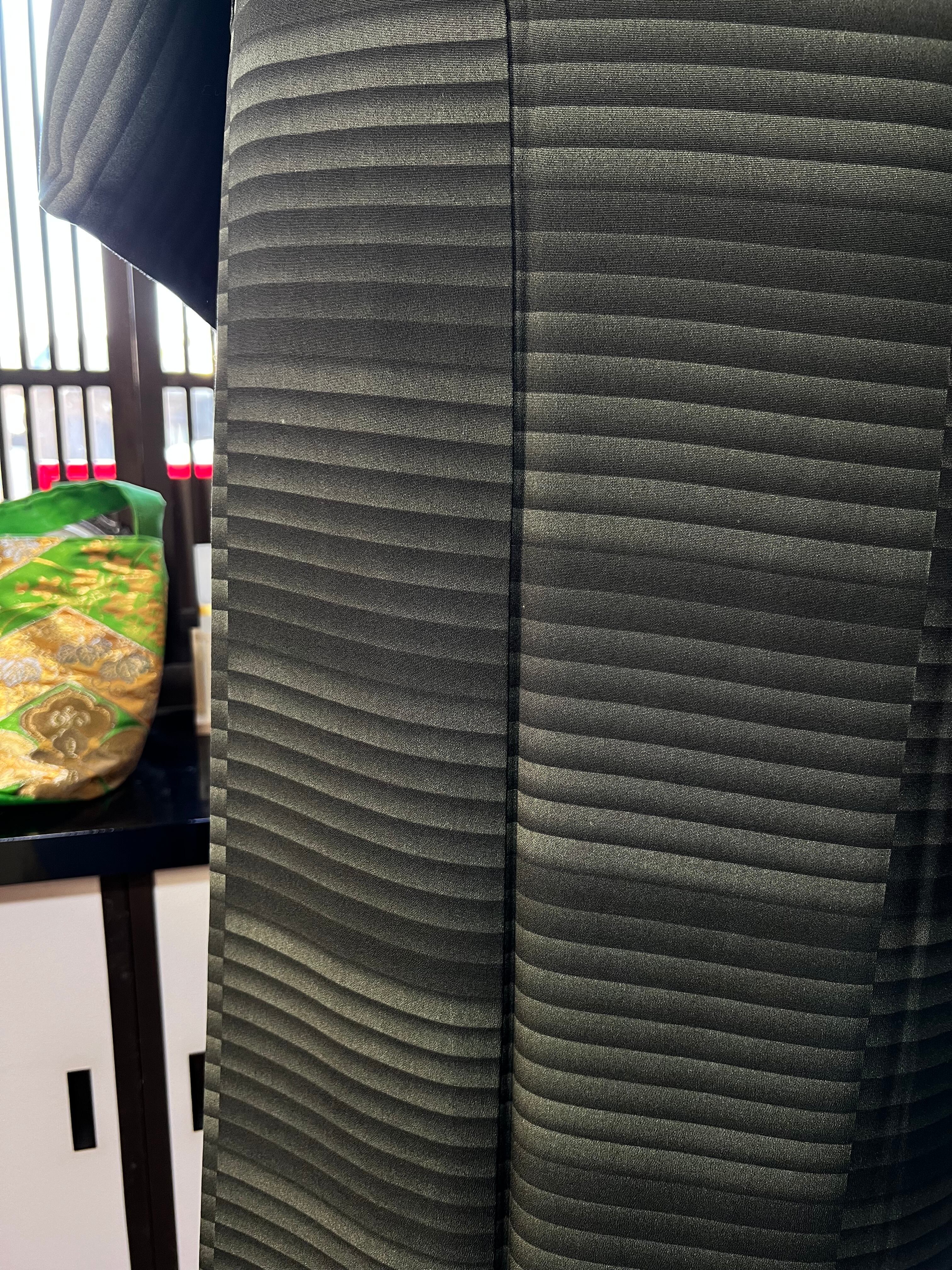暗め緑グラデーションの変わり横縞が際立つ、洗練された小紋です!上品なデザインは、日常のコーディネートから特別なシーンまで幅広くお使いいただけます。